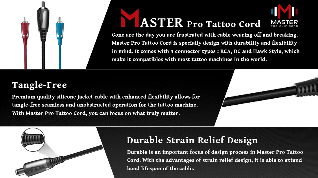 Зажим для тату-машинки EZ Master Pro, шнур RCADCHawk в стиле силиконовой оболочки, кабель для тату-машинки и источник питания, 1 шт.