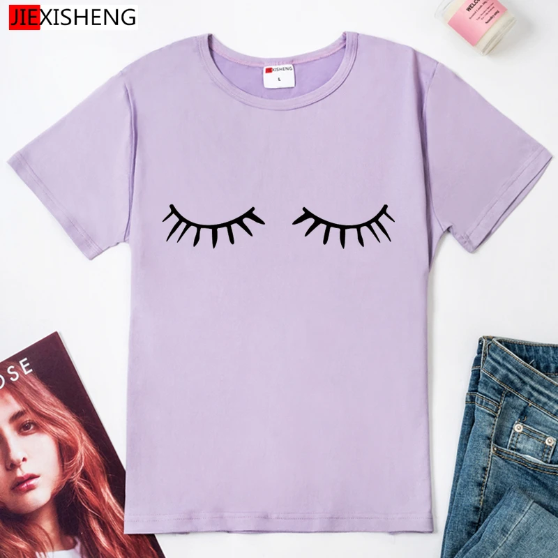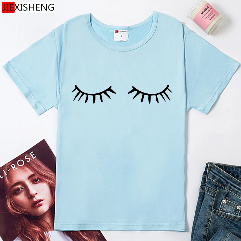 Модные футболки для девочек 2020 Летние повседневные футболки с коротким рукавом белого цвета с круглым вырезом с принтом глаза, Милая футболка