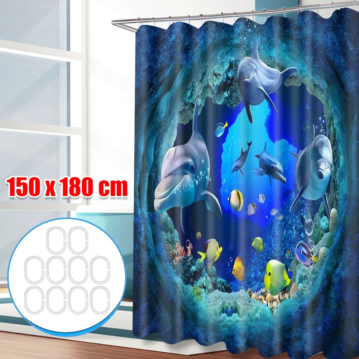 Занавеска для душа из полиэстера, водостойкая, с 10 крючками