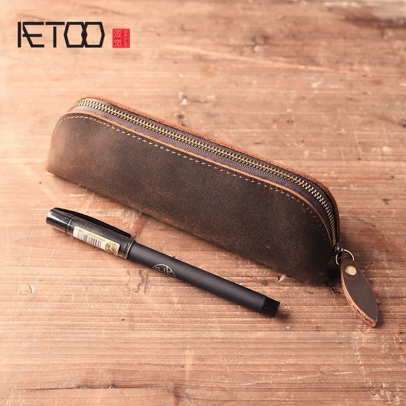 Ручная сумка для макияжа AETOO Crazy horse, кожаная ретро-сумка для канцелярских принадлежностей, сумка для ручки