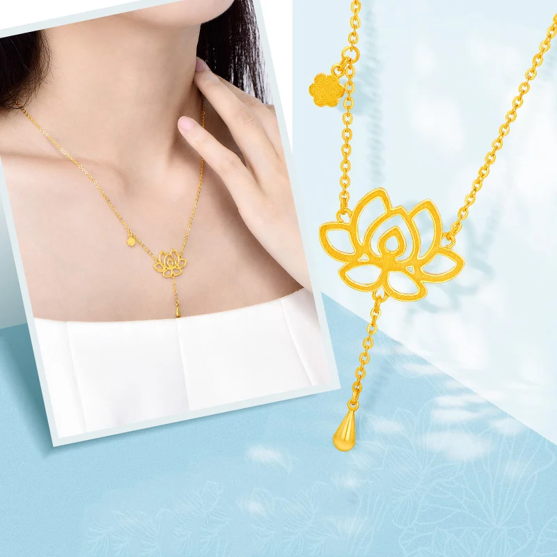 SFE 24K ожерелье из чистого золота настоящий AU 999 твердая золотая цепочка классический красивый Лотос высококлассные модные ювелирные изделия Лидер продаж Новинка 2020