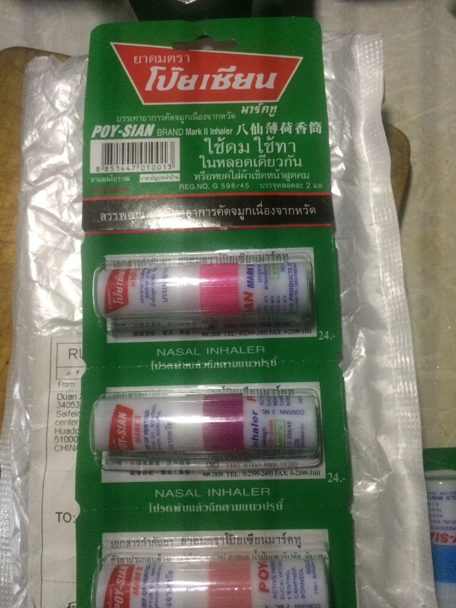 ОписаниеСоли продуктов содержат ментол, камфор, борнеол большинство эфирных масел и многое другое. Такие как масло, масло гвоздики, масло мяты перечной или Эвкалиптовое масло эвкалипта.А также помогает растворить жесткое масло, как кунжутное масло или минеральное масло с экстрактами некоторых трав. Основные элементы ментола или перечной мяты называются чешуйками.Камфора и борнеол, к ним относятся эфирные масла, которые могут вызвать ощущение холода в носовой полости, бодрствование, ощущение освежения.Соли, состоящие из трех основных соединений, сделают очистку носовых ингаляций. И вызывает холодное ощущение свежести и оповещает НАСА удобным как носовыеСкопление, головокружение или обмороки, но правильно Используйте ингалятор. Вдыхайте близко, но не в прямом контактеНе позволяйте трубке держать нос. Потому что каждое вещество может вызвать раздражение при контакте. Не прикасайтесь к солям для носа. Это может вызвать инфекциюСоли способны временно уменьшить признаки. Если вы должны обратиться к врачу. Соли, как лекарство, ищут признаки воды или воска, хлопковый шарик или платок илиТонкая грудь и вдыхает пары. Или может быть использован вне носа, но небольшое количество. И если есть болезни полости носа. АллергияВоспаление носовой полости или синусит следует избегать использования. Это может быть связано с аллергическим повреждением носовой перегородки. Если ингаляционный препарат, который очень концентрирован. Лекарство может раздражать больше ингаляций может быть вредно для детей. Следует держать вдали от детей.Состояние: абсолютно новый, герметичный, никогда не открываетсяИспользование:Облегчение головокружения, усталости или головной боли.Очистите дыхательные пути и очистите синус.Натрите эликсир на висках для дополнительного облегчения и осознания.Помогает вам чувствовать себя свежим и бодрым.Быстрое облегчение от залога носа простуды/аллергия на Сенную лихорадку/синусит