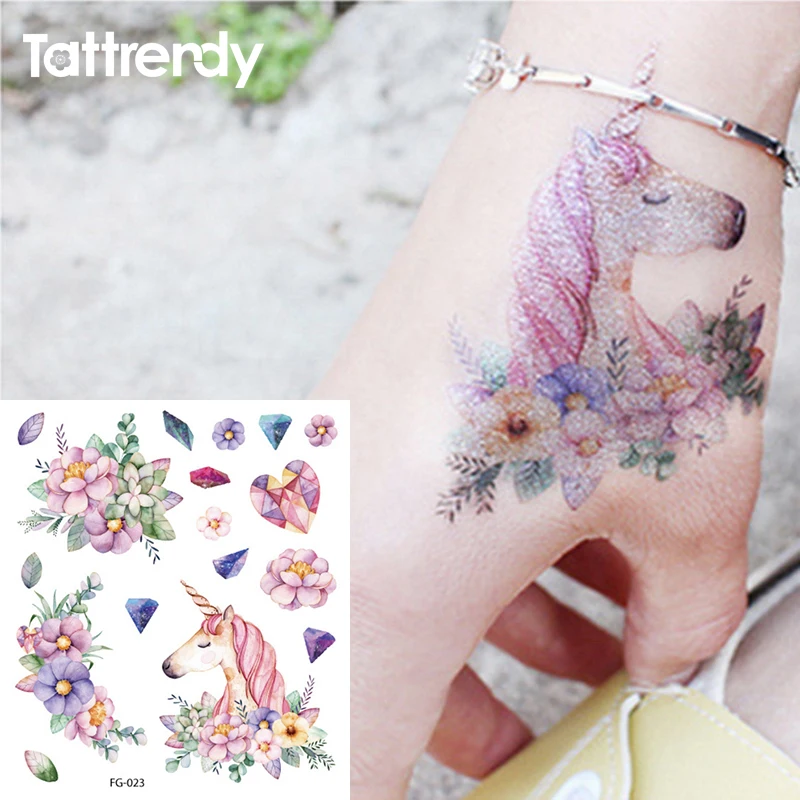 1 лист, блестящая Красочная флеш-Татуировка непромокаемая Временная тату-наклейки, Мультяшные милые единороги, кошки, цветы, деколи, подарки для детей
