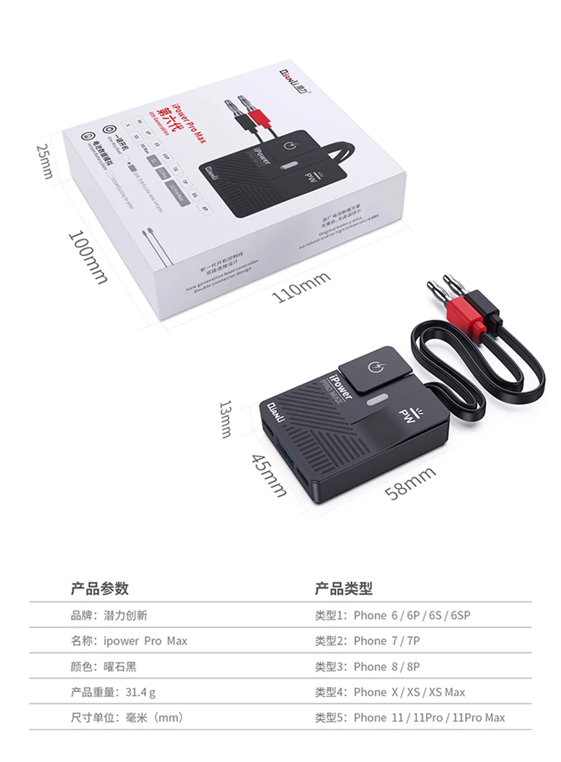 DC источник питания iPower Max Тестовый Кабель для iPhone 11/11 Pro/11 Pro Max/XSMAX /X 8G/8P/X/7G/7P/6S/6SP/6G/6P с разъемом для ключей