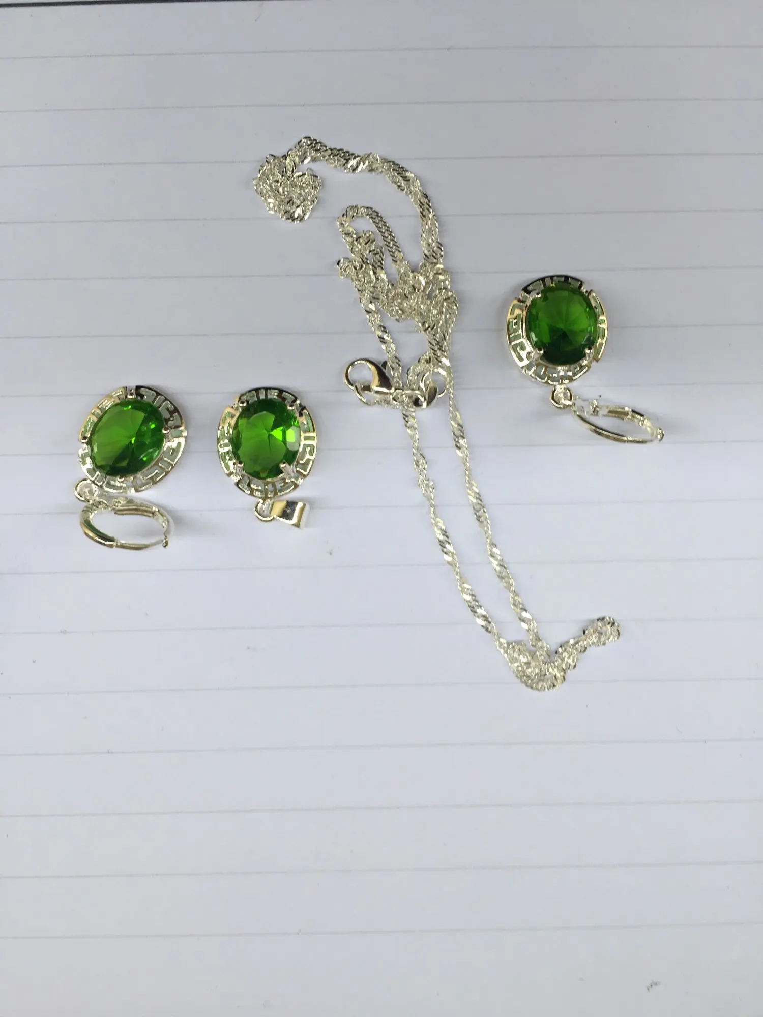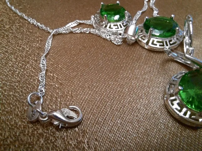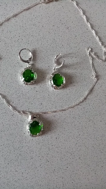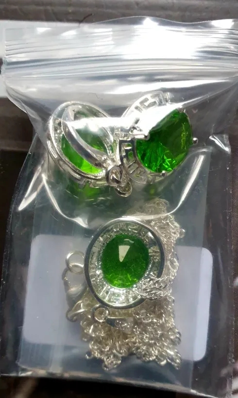 Огромное спасибо!!Такай упаковки я ещё не видела(вакуум).Продавец позаботился о целостности изделия.И не зря.Комплект очень красивый!!И цел!!Это радует.Внешне похож на родированное серебро.Камни симпатичные.Выглядит дорого!!Очень рекомендую продавца и комплект.Спасибо ещё раз!!