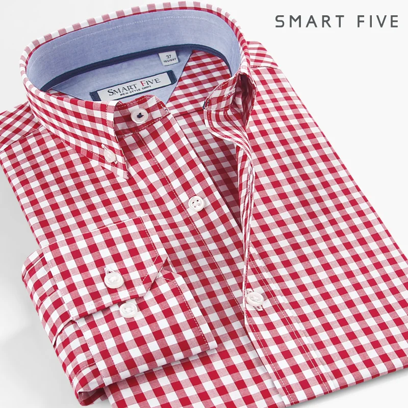 Мужская рубашка в клетку Smart Five, модная Повседневная рубашка с длинными рукавами, 100% хлопок, 2018