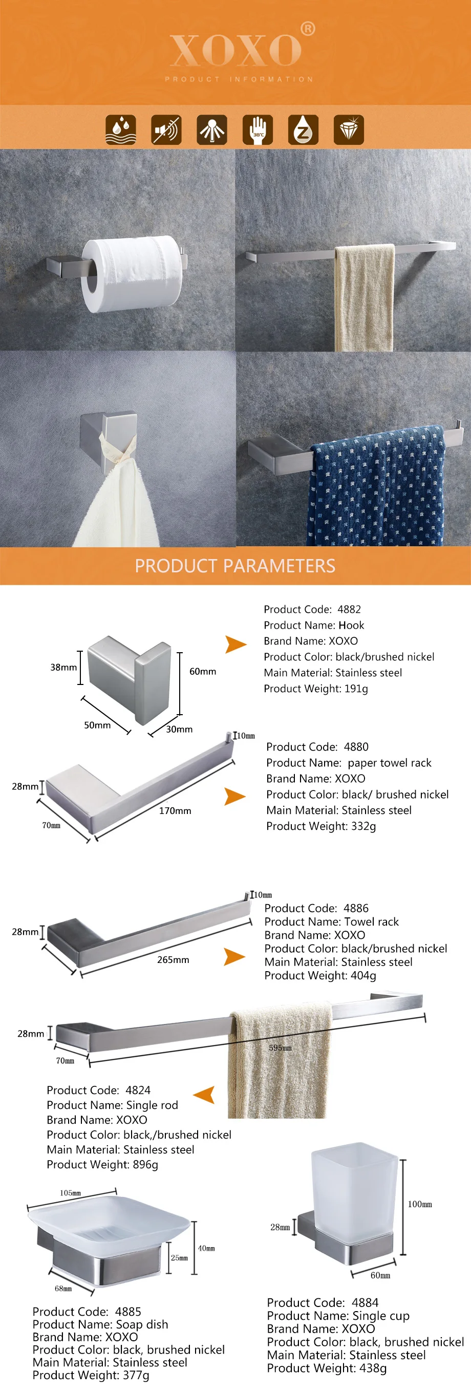 XOXO черное кольцо для полотенец из нержавеющей стали 304 крючок для халата держатель для туалетной щетки вешалка для полотенца аксессуары для ванной комнаты комплекты зажимов для бумаги 4880