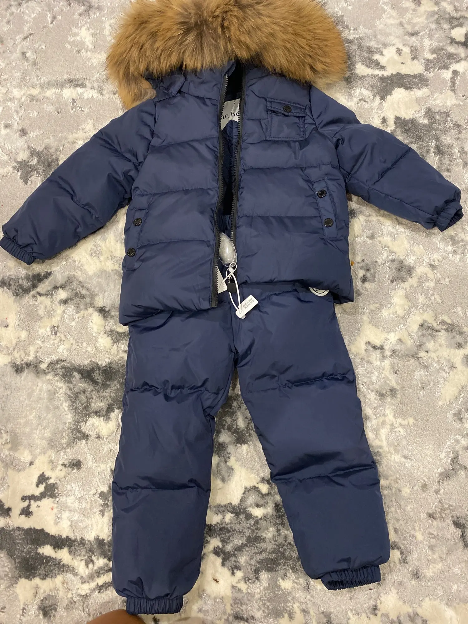 Пуховик и комбинезон для мальчиков и девочек, теплый пуховик на утином пуху и комбинезон, комплект одежды из 2 предметов, для русской зимы