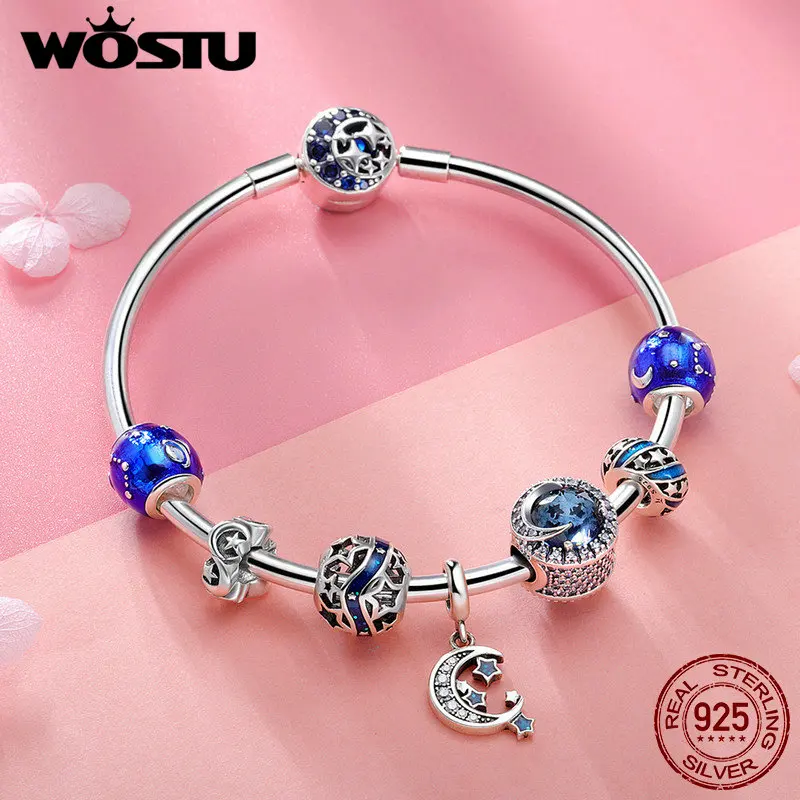 Женский браслет из серебра 925 пробы с Луной и звездами и голубым небом
