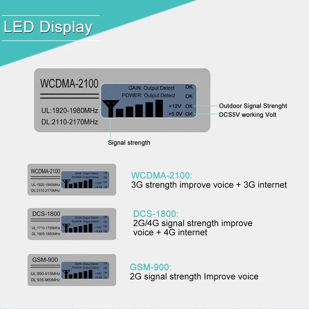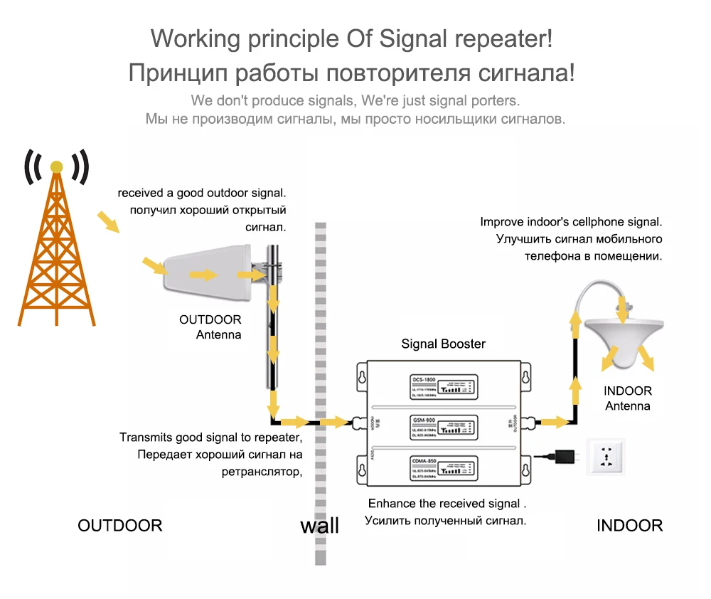 Пожалуйста, убедитесь, что вы можете получить по крайней мере 2 бар 2G/3G/4G сигнал на открытом воздухе перед покупкой, в противном случае этот продукт может помочь вам. Для улучшения сигнала в помещении необходим хороший внешний сигнал.