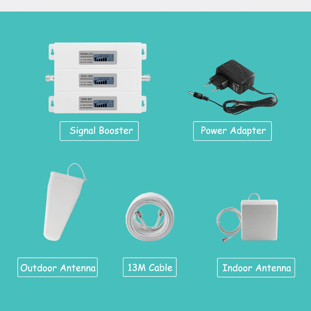 Трехдиапазонный сотовый ретранслятор Walokcon 90018002100 GSM DCS WCDMA 2G 3G 4G LTE усилитель сигнала Band 1 4G комплект усилителя сотового телефона