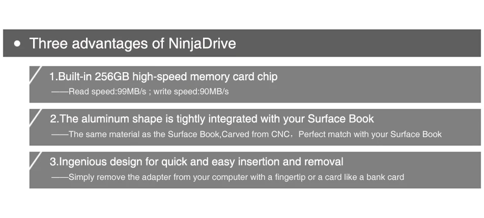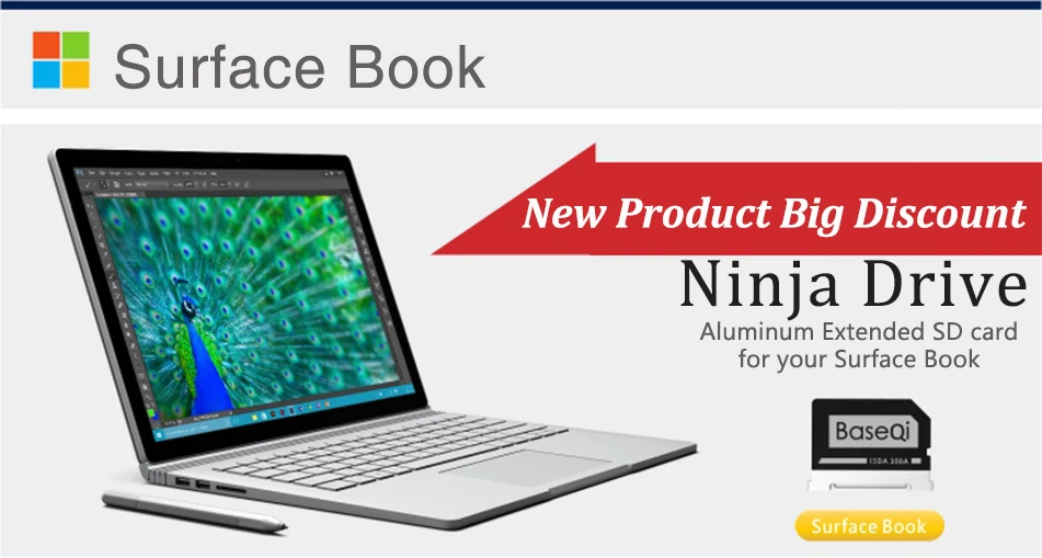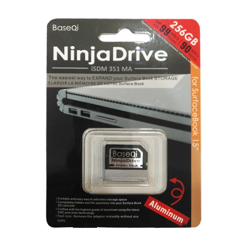 Алюминиевая карта памяти 256 ГБ, BaseQi NinjaDrive для Microsoft Surface Book, 1315 дюйма