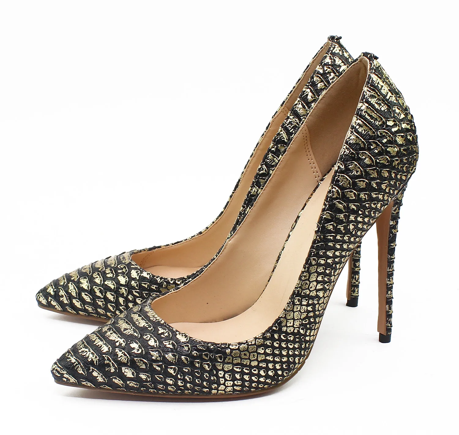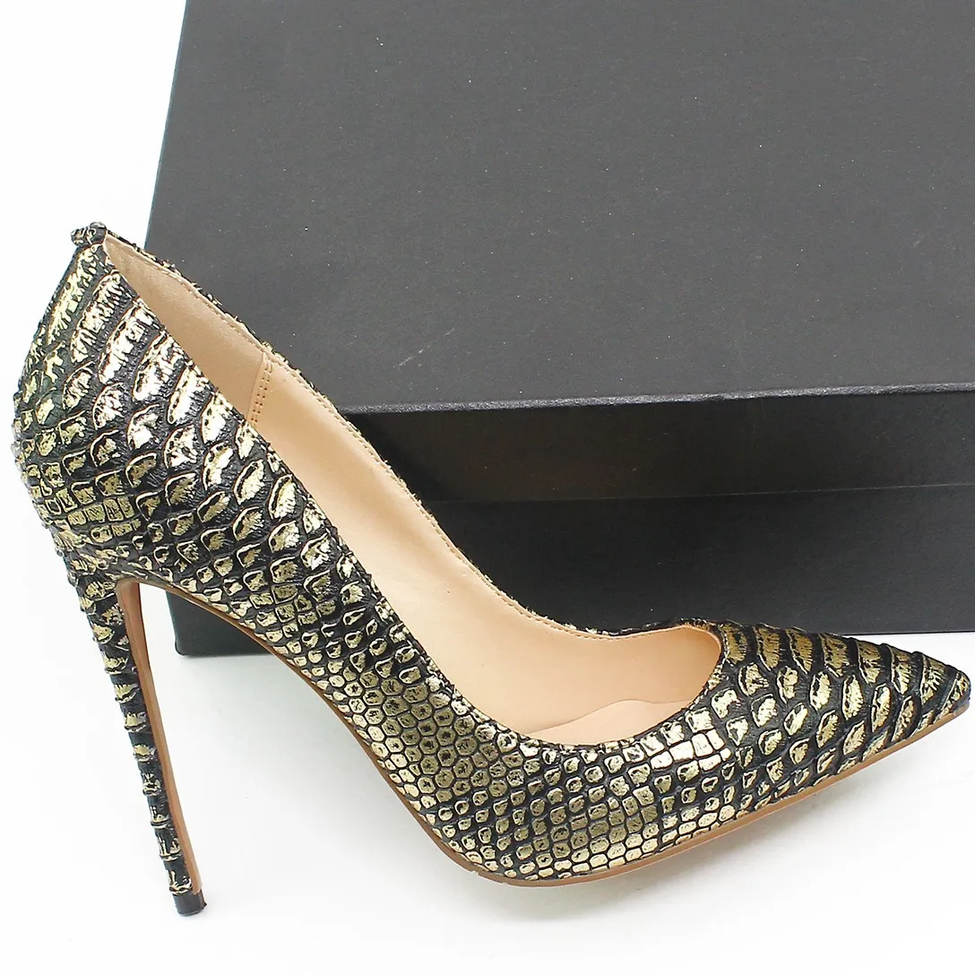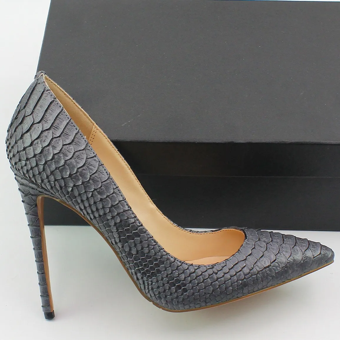 Женские туфли-лодочки из змеиной кожи, на тонком высоком каблуке