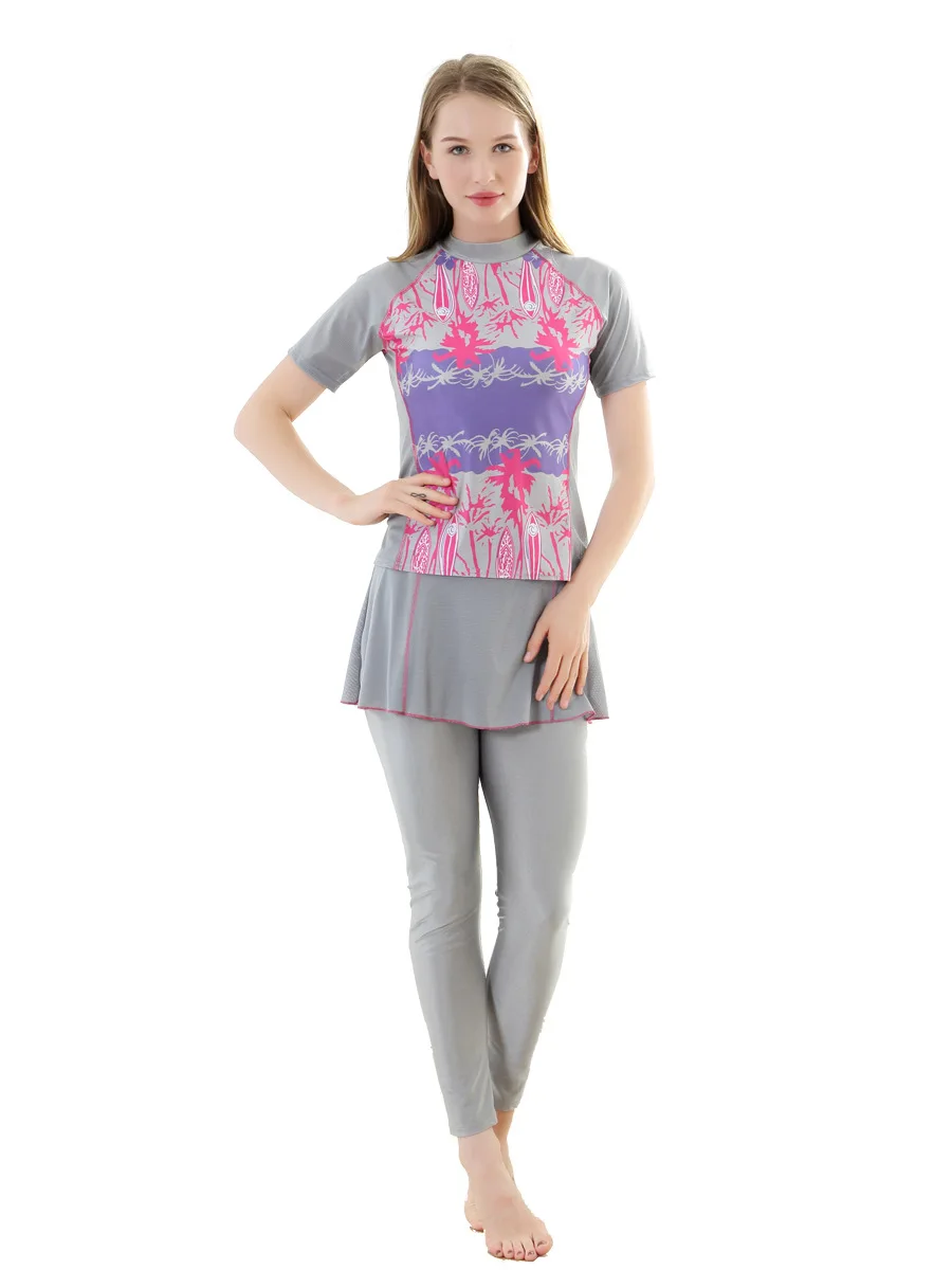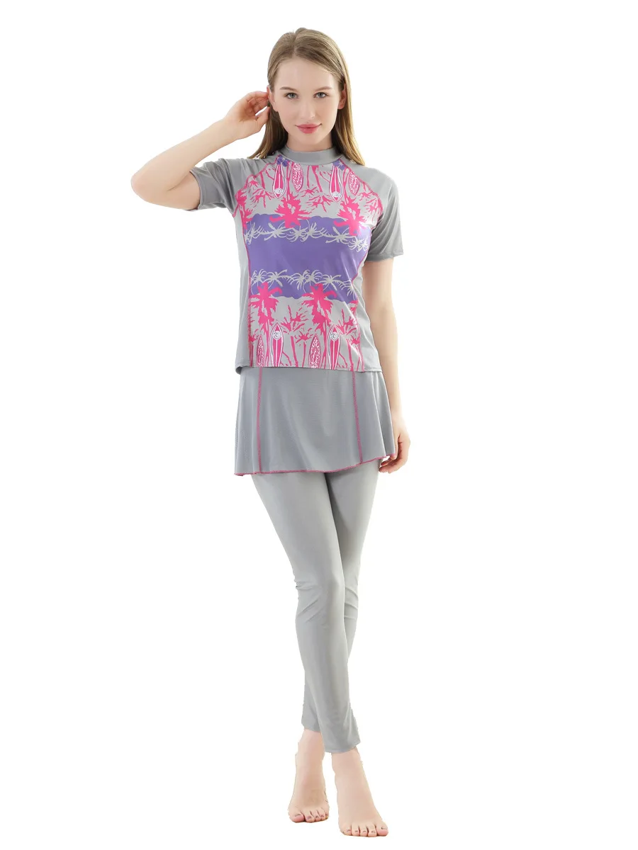 Женский скромный купальник с коротким рукавом, в стиле пэчворк