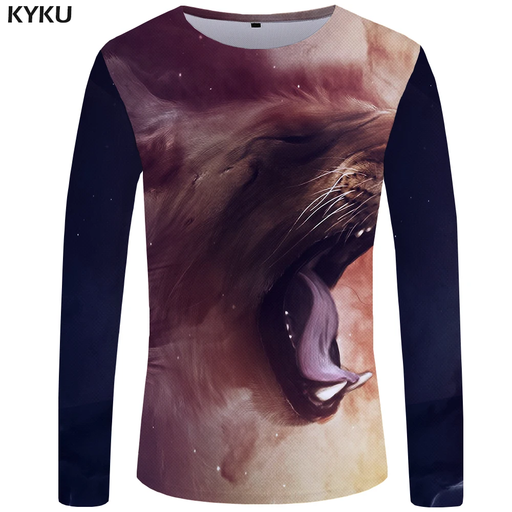 Мужская футболка с длинным рукавом KYKU, серая футболка с объемным животным, в стиле панк, с рисунком льва, Осень-зима 2019