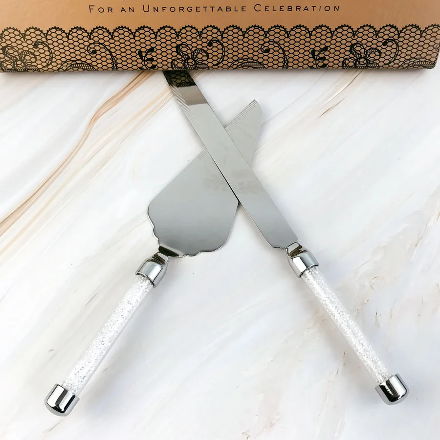 Персональный Свадебный нож для торта, набор серверных кристаллических золотых свадебных очков из нержавеющей стали, лопатка для торта H11230