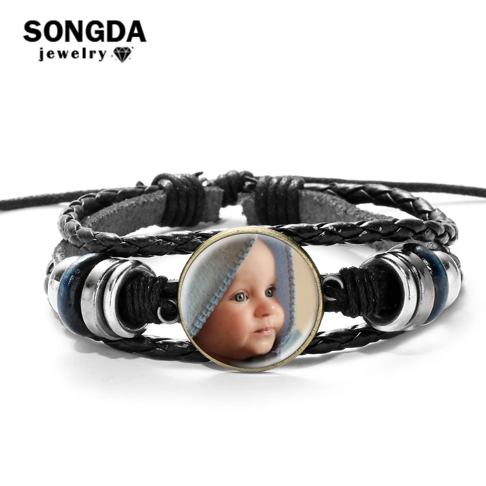 Индивидуальный кожаный браслет SONGDA ручной работы на заказ член семьиваше имясообщениесерия влюбленных пар фото Сделай Сам специальный подарок