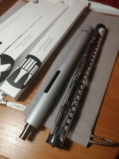 Отвёртка поставляется в коробке, в который ещё 2 коробки (сама отвёртка и набор бит). Как бонус продавец положил удобный мешочек (в него помещается отвёртка и биты). Отвёртка очень удобно лежит в руке. По сравнению с другими отвёртками размер очень удобный. Надо понимать, что отвёртка не мощная. Это не шуруповёрт. Она предназначена для мелких винтов. Которые не сильно затянуты. Получается, чтоб отвернуть затянутый винт. Нужно рукой сделать поворот. Чтобы сдёрнуть затяжку. А потом уже отвинчивать через кнопку. Что по поводу минусов. Мне доставили с заедающей кнопкой. Нажимаешь. Она немного проваливается и там залипает. Вначале была мысль что это специально. Чтоб не держать кнопку. Но потом понял. Что она даже при залипании зачастую не нажимает. И не крутит. При этом в другую сторону залипания кнопки нет.