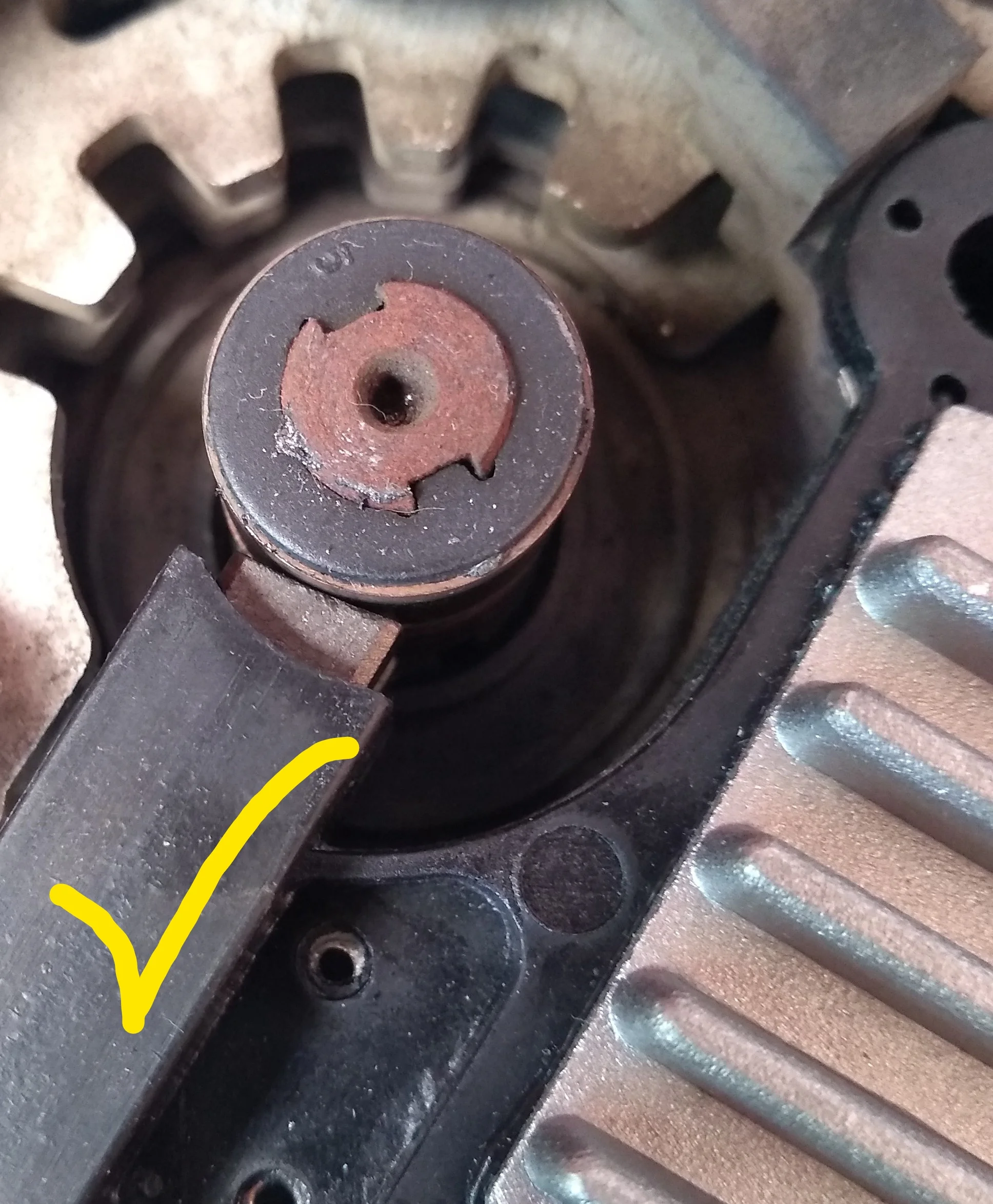 Регулятор был плохо собран, с углеродными кистями, установленными сзади (фото с крестом), поэтому пришлось правильно их сварить и собрать (фото с хорошим визуальным), В противном случае было бы очень трудно установить их или, если бы вы установили их напрямую, кольца генератора могут быть сгорели.