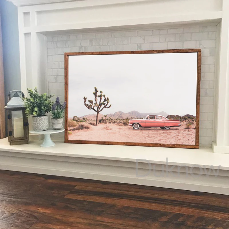 Винтажный автомобильный плакат с принтом розовый автобус настенная художественная фотография, ретро автомобильный Холст Картина Настенная картина для гостиной настенный Декор
