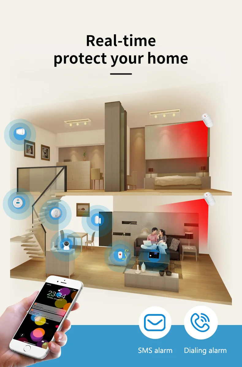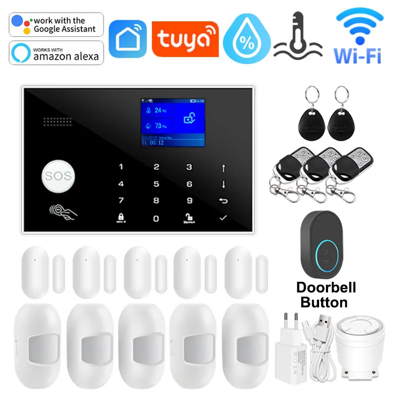 Система сигнализации Tuya с Wi-Fi и GSM для дома, охранная система с поддержкой Wi-Fi и влажности для умного дома, с поддержкой Alexa и Google