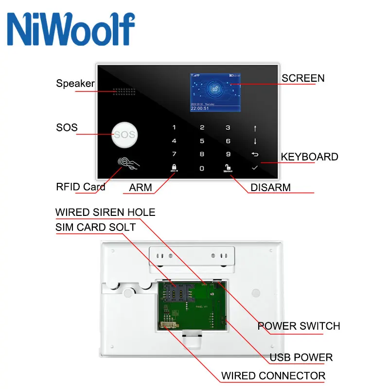 товар шел неизведанными морскими путями 3 месяца, при то что заказывала 11.11 со сроком доставки месяц. Сигнализация работает, настроил все датчики после того как настроил доступ агрегата к вай фай сети через телефон. Пищалка нормальная, для квартиры или спугнуть вполне, но для частного дома слабовата, нужно что-то погромче. Брелки и оконные датчики с батарейками в комплекте, сенсорные - без них(2 бат АА). Встроенный аккумулятор базы не о чем, держит не более получаса. Меню понятное, можно обойтись и инструкцией на английском в комплекте.