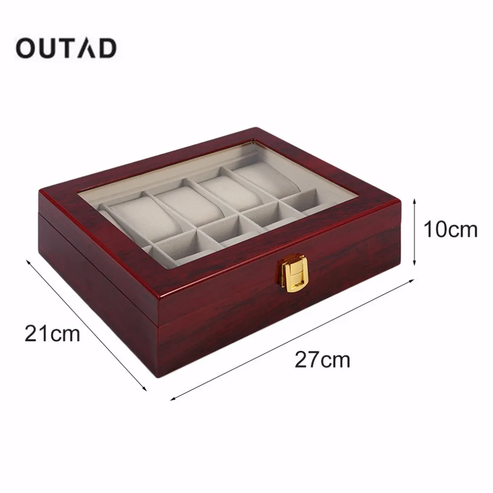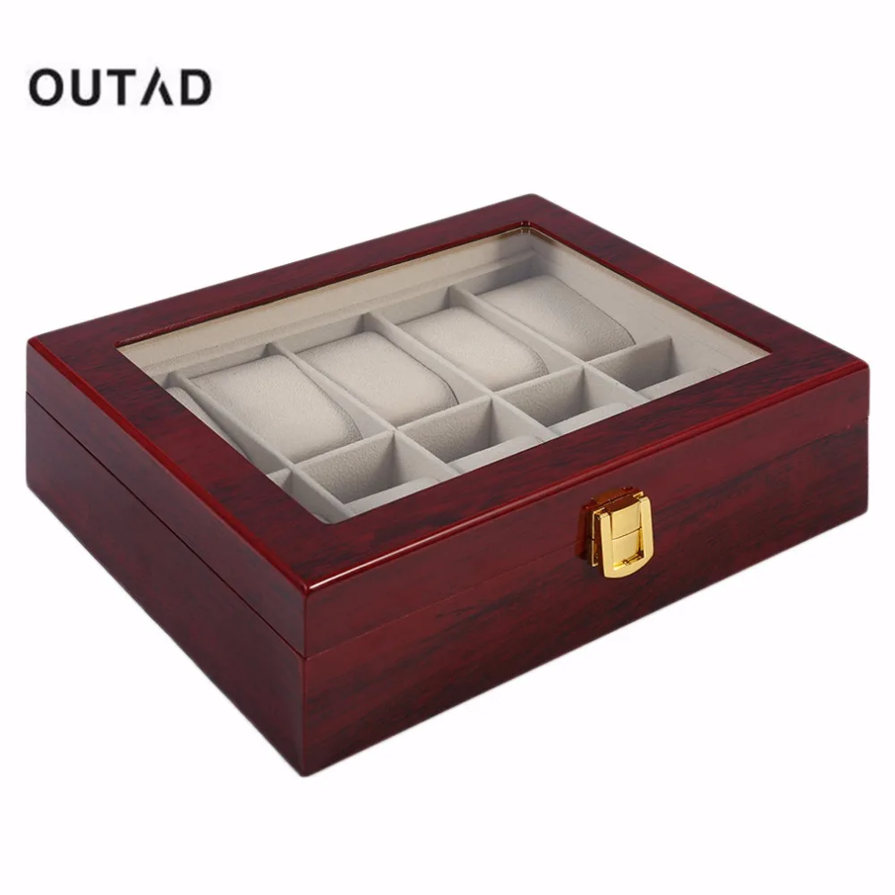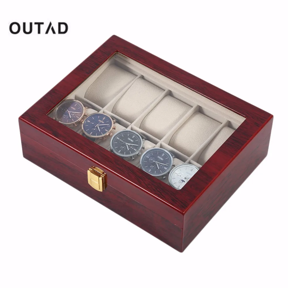 Роскошная деревянная коробка для часов с 10 ячейками, чехол для ювелирных изделий, часов, коллекционный чехол для хранения, красная коробка для часов