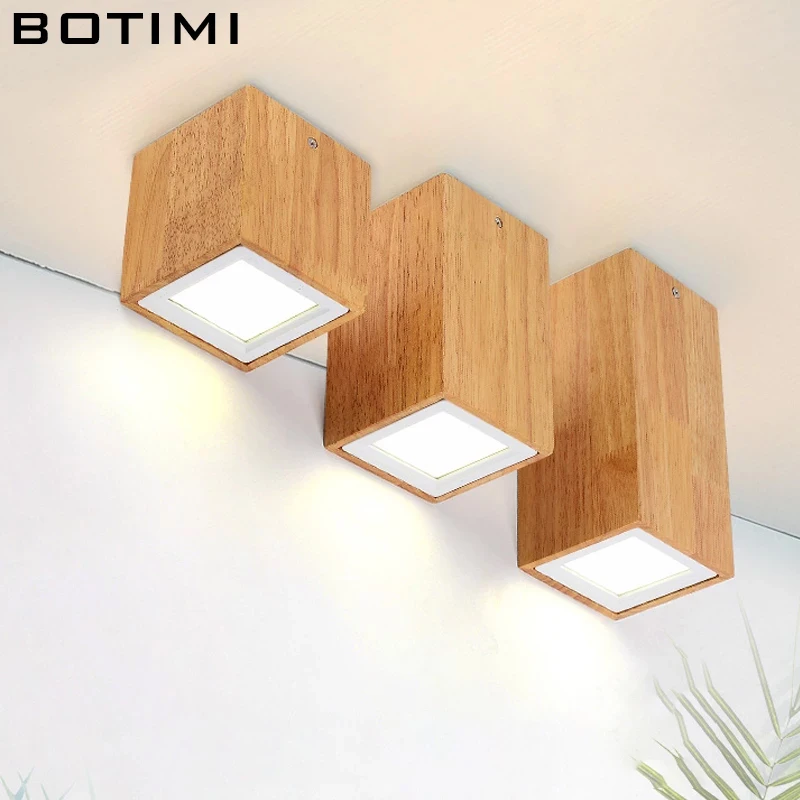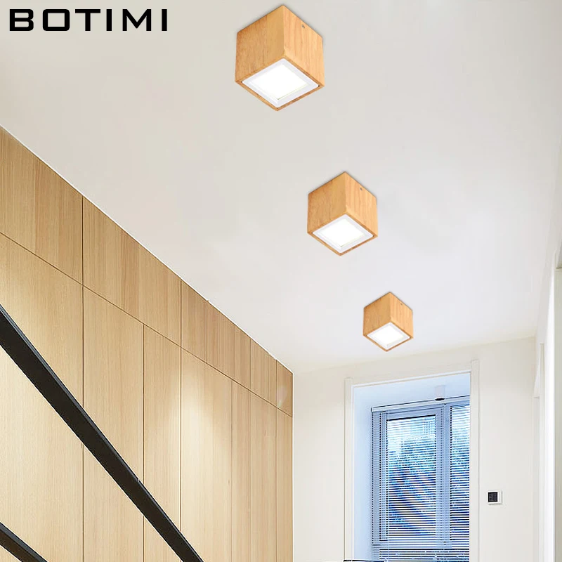 Современные светодиодные потолочные лампы BOTIMI для коридора, маленький круглый деревянный, поверхностное крепление, квадратный кубовидный Деревянный светильник для фойе, 220 В