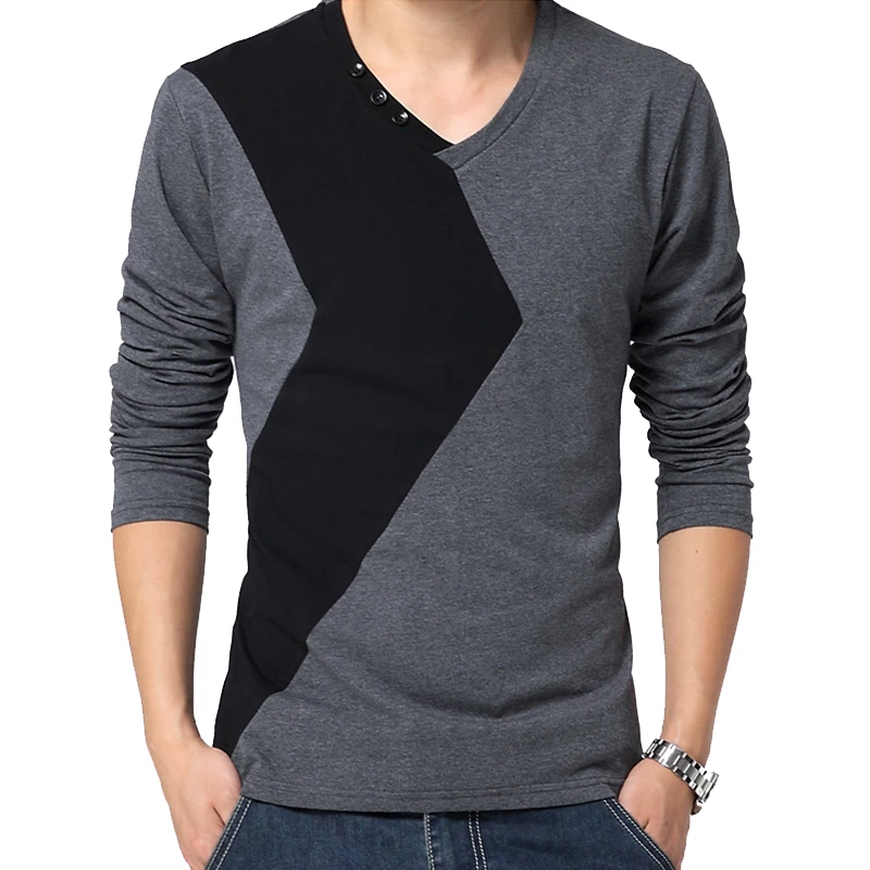 Browon означает футболки для всей семьи, модные футболки для Цвет лоскутное зауженные хлопковые рубашки с длинными рукавами, с v-образной горловиной, большеразмерная футболка мужская одежда 2021 M-5XL