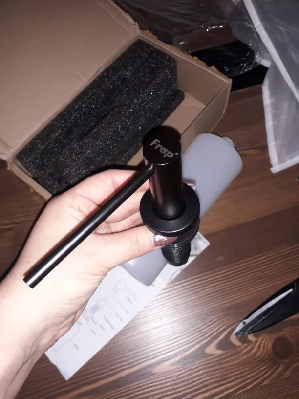 Заказала 21 сентября. Получила 2 декабря (хотя в Москву прибыл 25 октября...где колбасило посылку - хрен поймёшь). Номер отслеживался только на территории Китая. Дозатор пришёл не Frap, а Cappo (у меня, кстати, смеситель фирмы Cappo) и надписи сверху на дозаторе нет (на фото он присутствует). Это для меня не принципиально, но возможно, что кому-то эта информация будет полезной. Верх (носик и нажимная часть) - металл, Ниже - винтовая часть (с резьбой и сама гайка), а также контейнер - это всё пластик. Товар не плох, но можно найти и за меньшую цену.