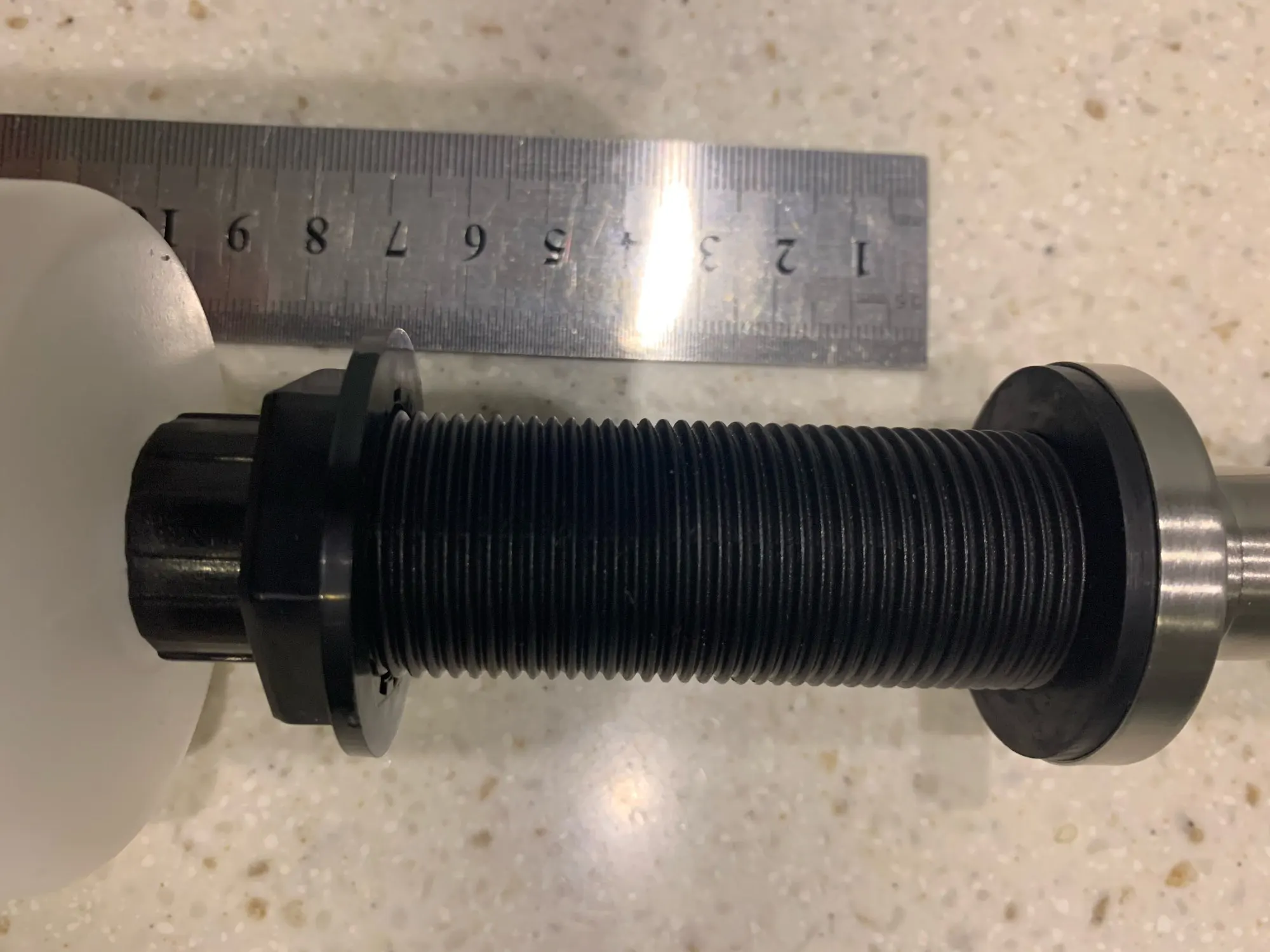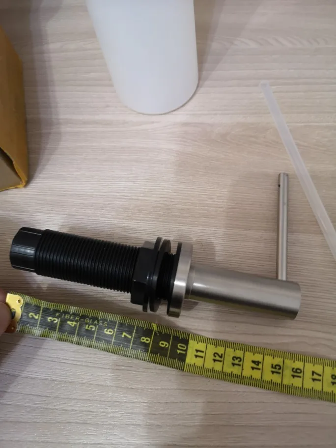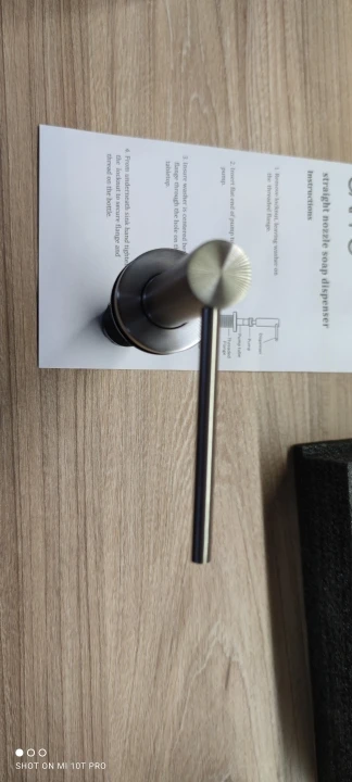 Llego en menos de 2 semanas. Tiene un solido cabezal de autentico acero inoxidable que tiene un buen tamaño (no es pequeño como los dosificadores del cuarto de baño). Se monta en 2 minutos en un agujero de 26 mm. Precio/calidad inmejorable!