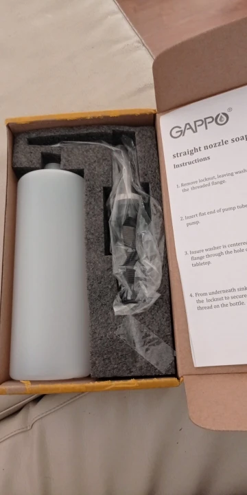Товар на вид очень качественный. Но тако й маленький. Колба большая, вместительная. Посмотрим как будет смотреться на раковине. Возможно большего размера и не надо. Опробовала в работе, пока с водой, помпа кончает хорошо. Продавцу конечно Пять! Все соответствует описанию. Рекомендую к покупке.