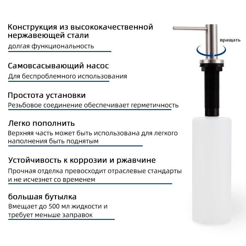 Отличный дозатор...сделан добротно,ставится за 10 минут..работает хорошо.