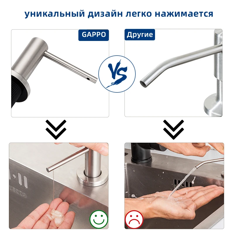 Заказывали Frap, пришло Grappo, а вот на сколько это Grappo не известно тк на диспенсере нет никакой маркировки кроме чёрно- белого вкладыша (инструкции). вроде всё работает, время покажет. Но осадочек остался тк смеситель фирмы Frap и диспенсер выбирался аналогичный.