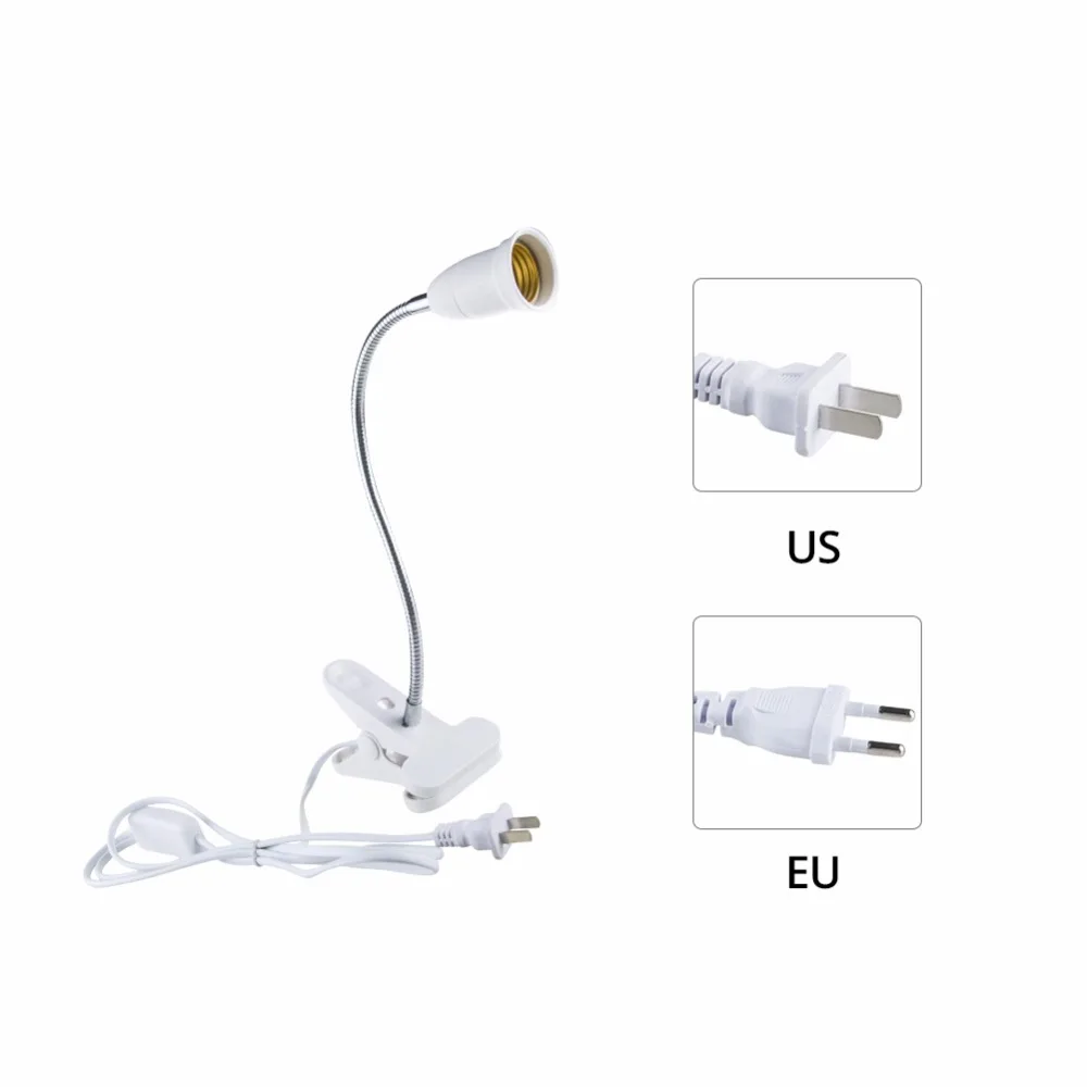 Гибкий держатель лампы с клипсой, переходник для лампы E27 для светодиодного светильника с переключателем ВКЛ.ВЫКЛ., штепсельная вилка европейского и американского стандарта, используется в качестве настольной лампы