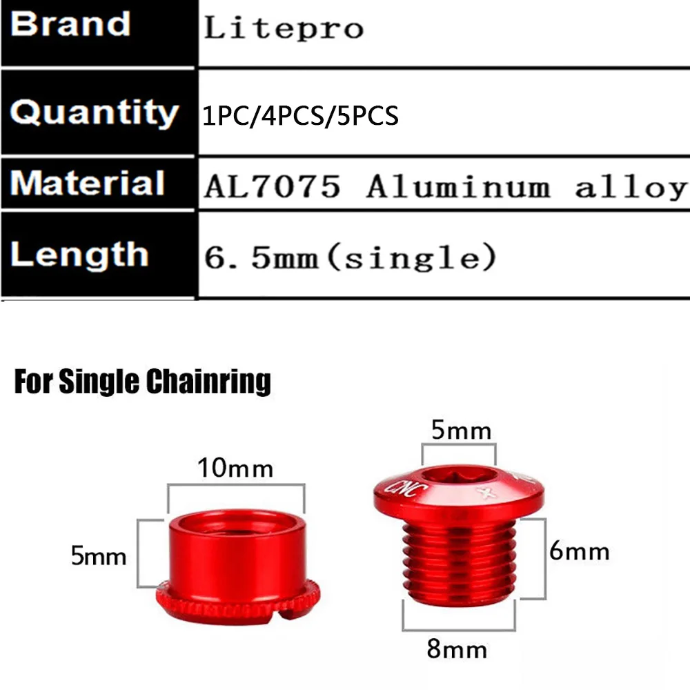 Litepro 5 шт. одиночные болты для горного велосипеда, болты для шоссейного велосипеда, AL7075, кольцо цепи велосипеда из алюминиевого сплава, черный, красный