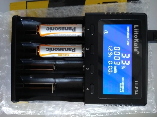 хорошая зарядка. определяет сама тип батарей. можно заряжать 1 li-io а вторую ni-mh. доволен. только плохо, что ток заряда не падает ниже 0.5 ампера