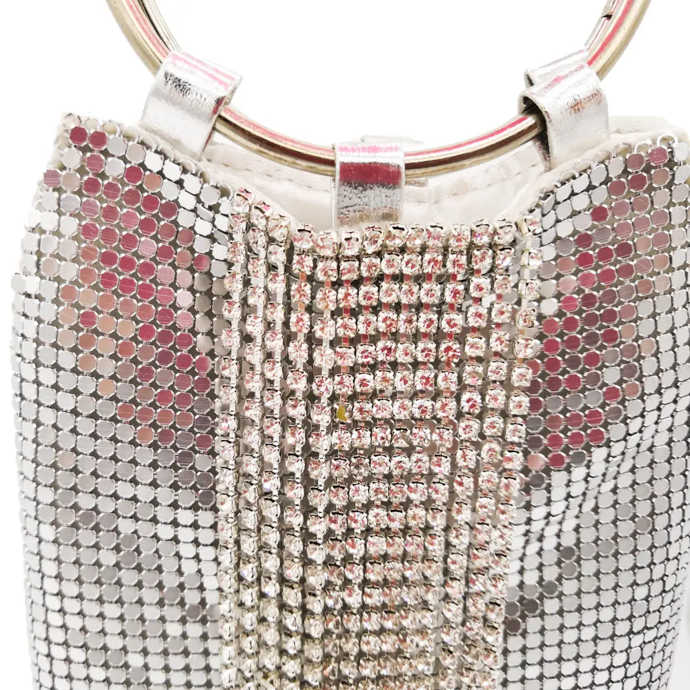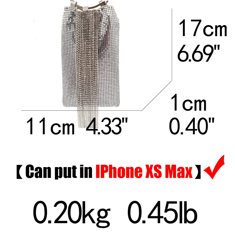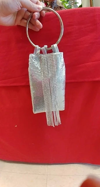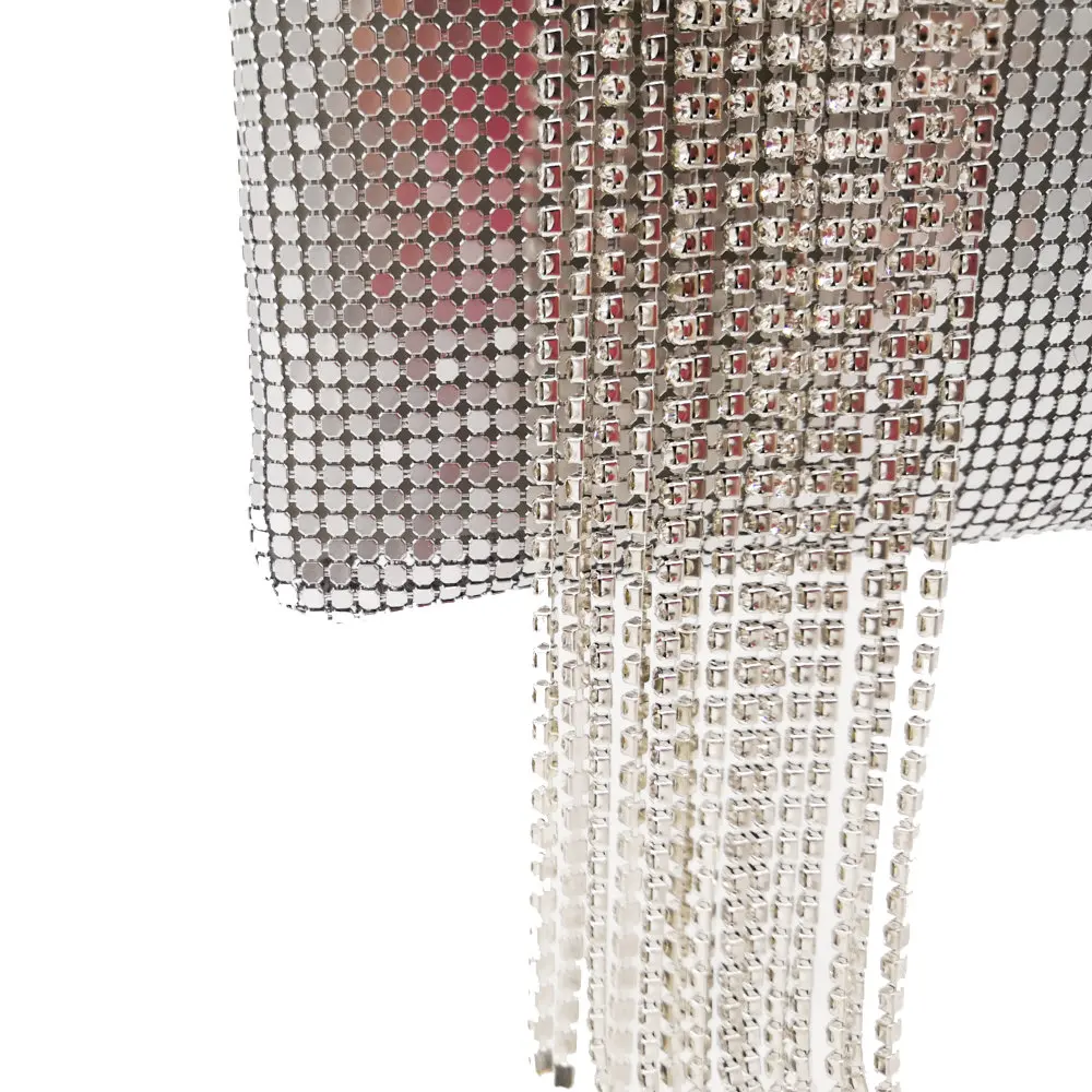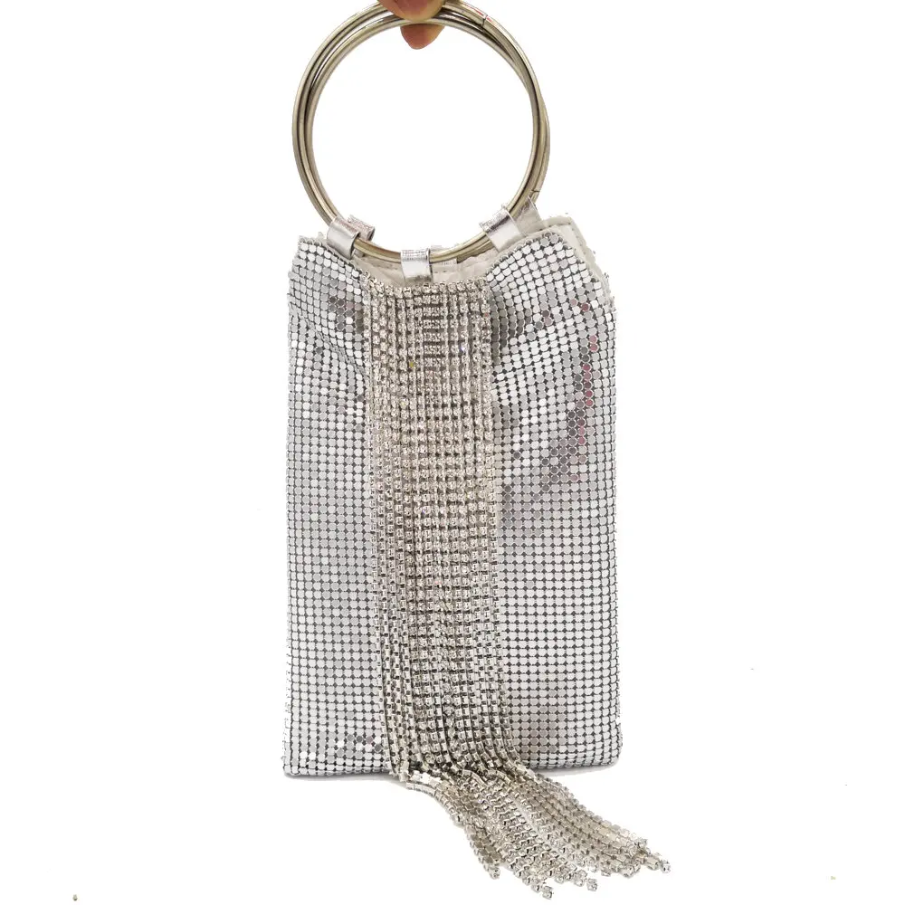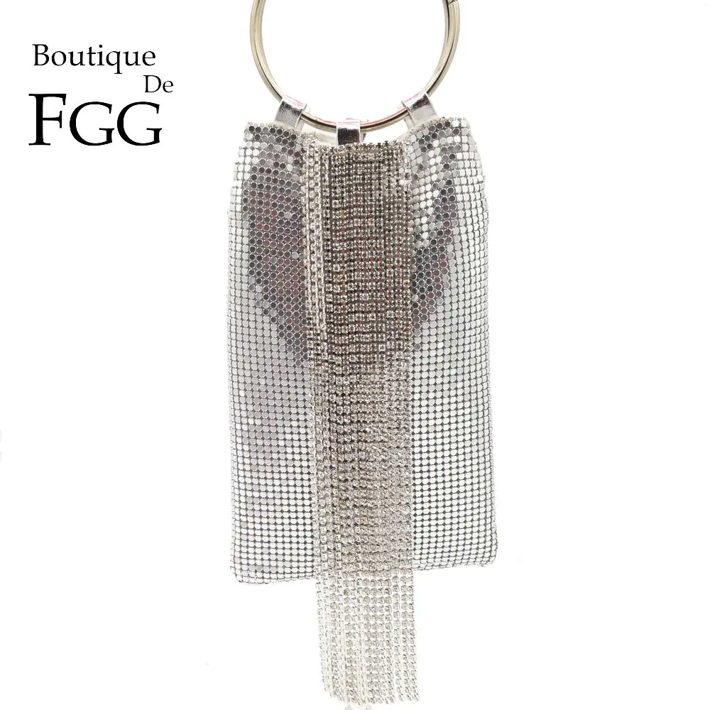 Boutique De FGG ослепительный серебряный кристалл кисточкой женский алюминиевый вечерний кошелек Коктейльная вечевечерние Браслет клатч сумочка