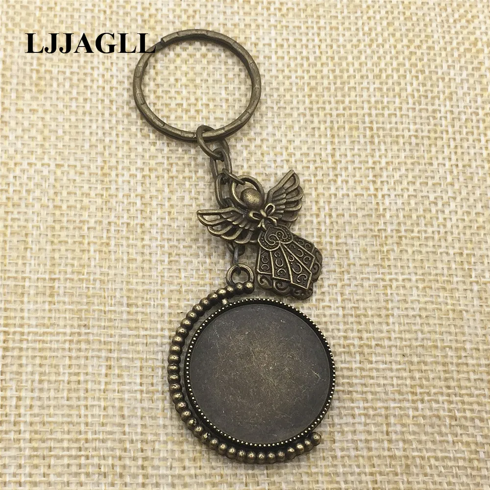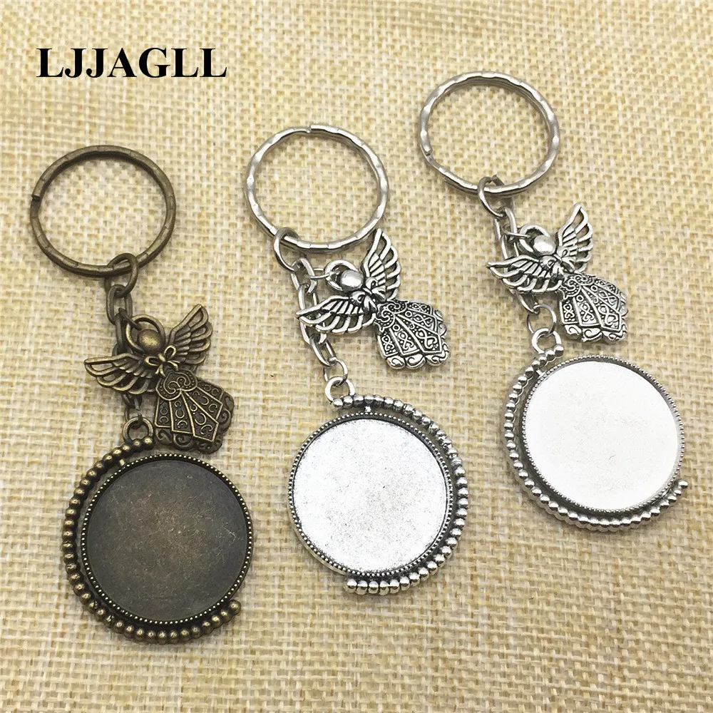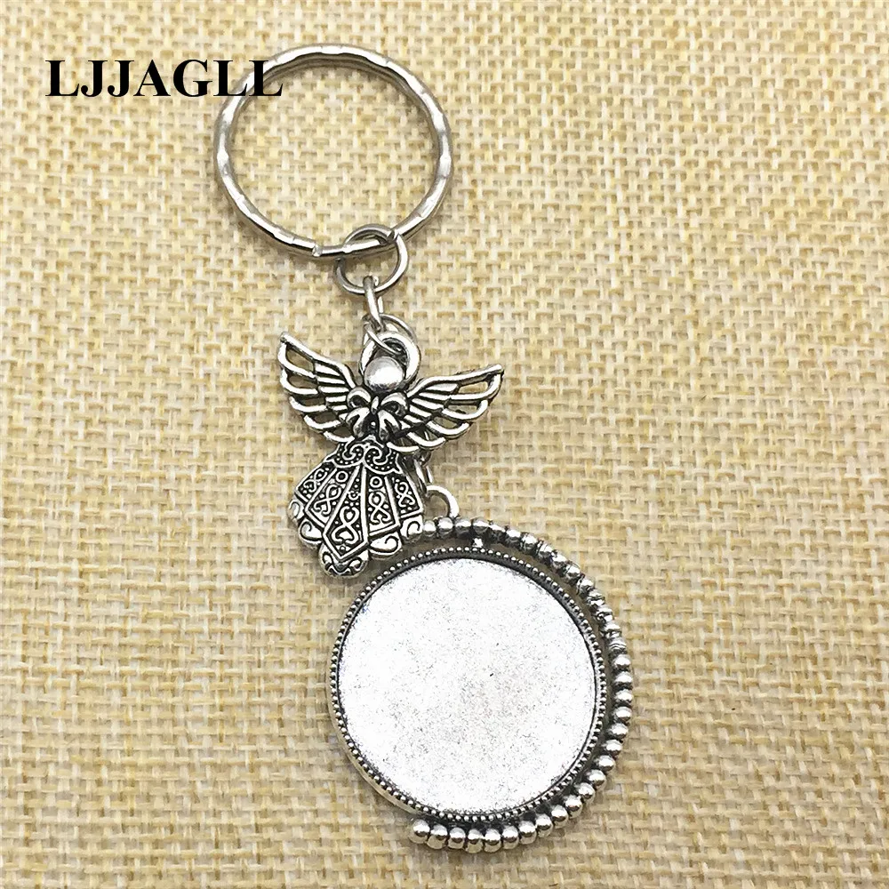 Длинный круглый сплит-брелок Holy Angel Charm Rhodium, 3 шт., 25 мм, вращающийся камео-основа, двухсторонний брелок для самостоятельного изготовления ювелирных изделий, AYSQ219