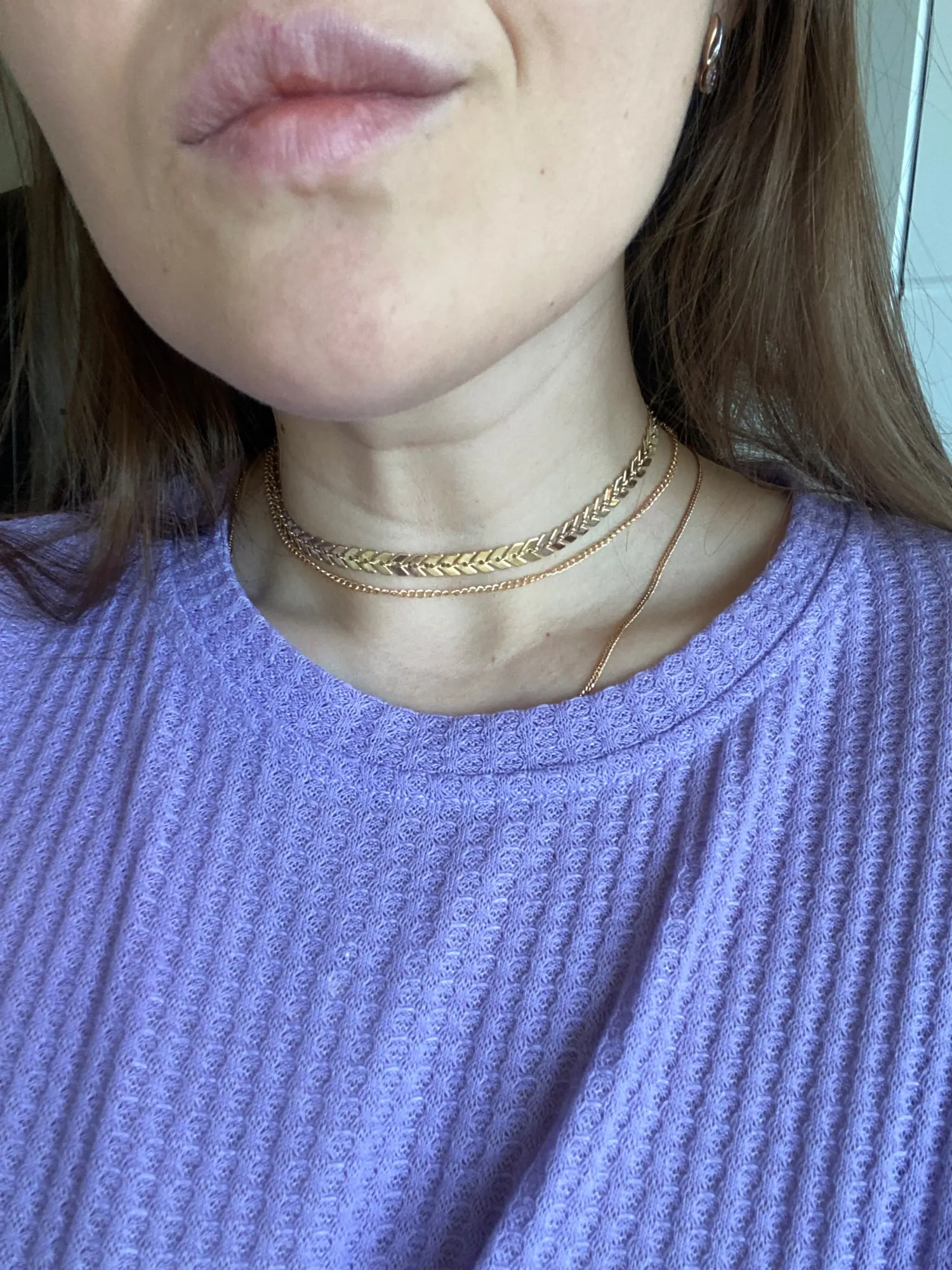 Это фантастическое ожерелье! Хороший, но блестящий! Ideaaaaal для ежедневного использования или для более официальных обедов или обедов. С некоторыми золотыми сережками выглядит великолепно! Я в восторге!