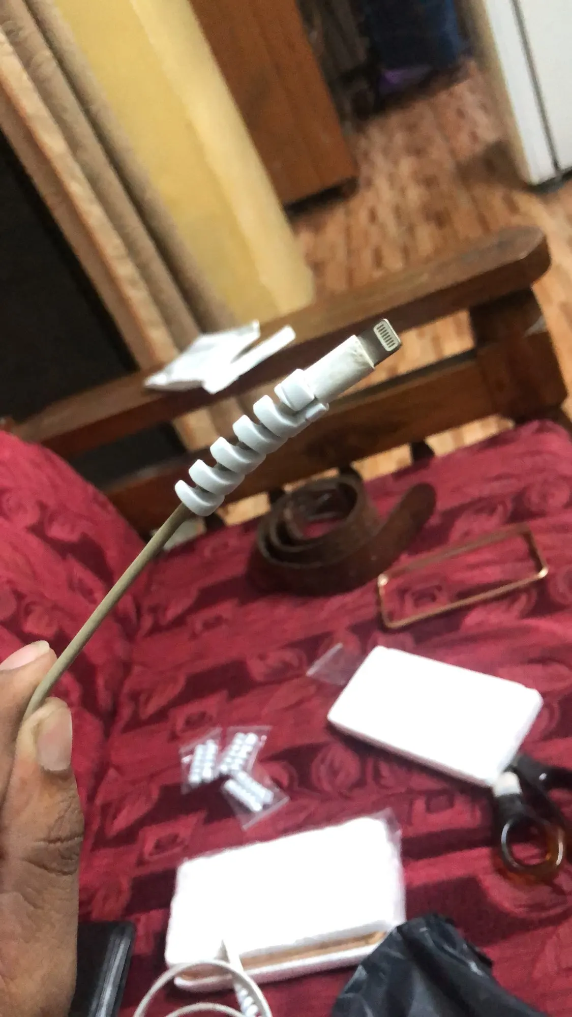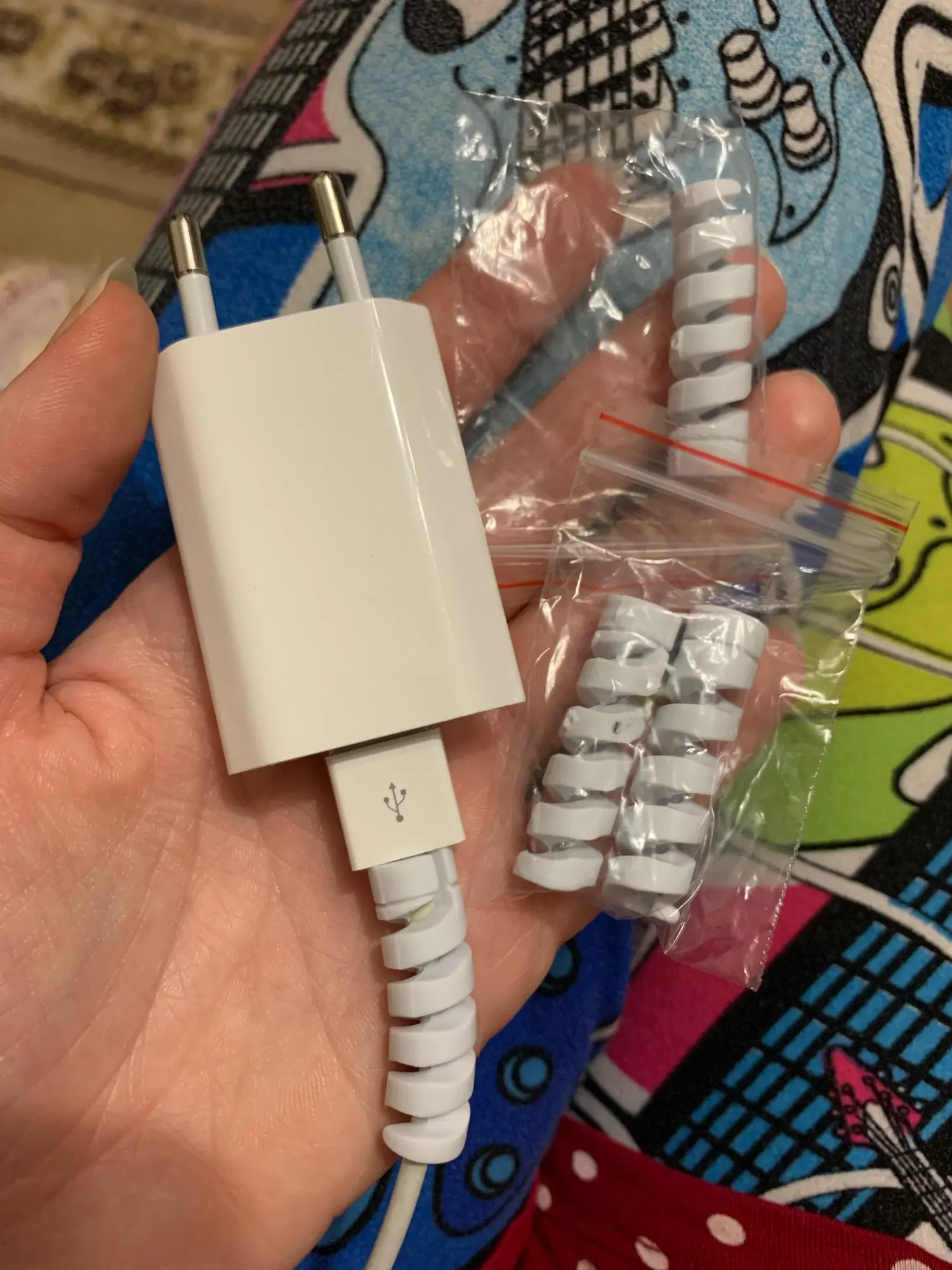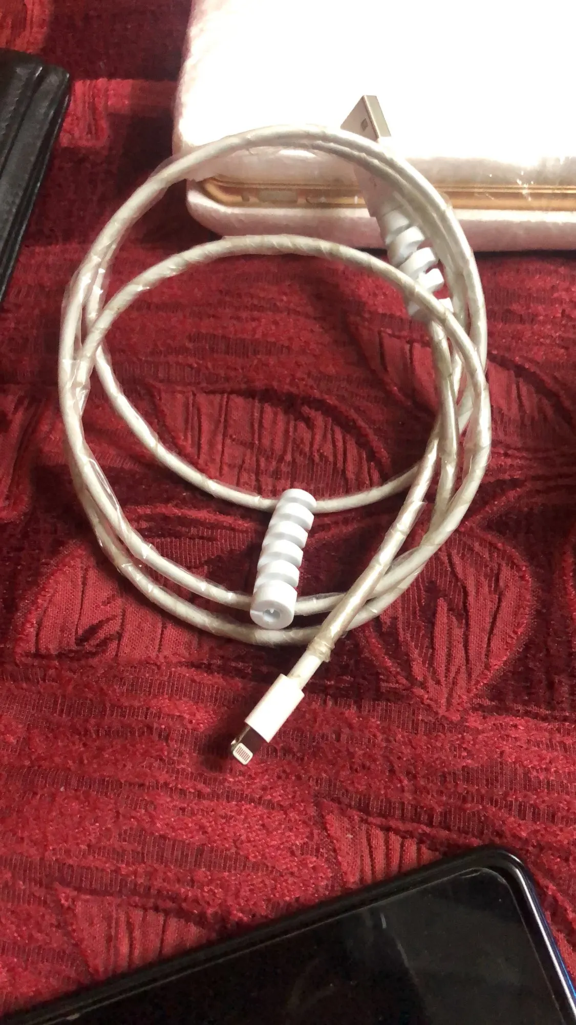 очень миленькие пружинки, нацепила на провод от зарядки Айфона, прибыли за 10 дней