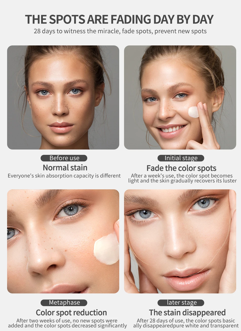 3. Сильно подавляет меланин кожи, эффективно удаляет веснушки, пятна от солнца, возрастные пятна, возрастные пятна, меласму, коричневые пятна, пигментацию, шрамы от акне