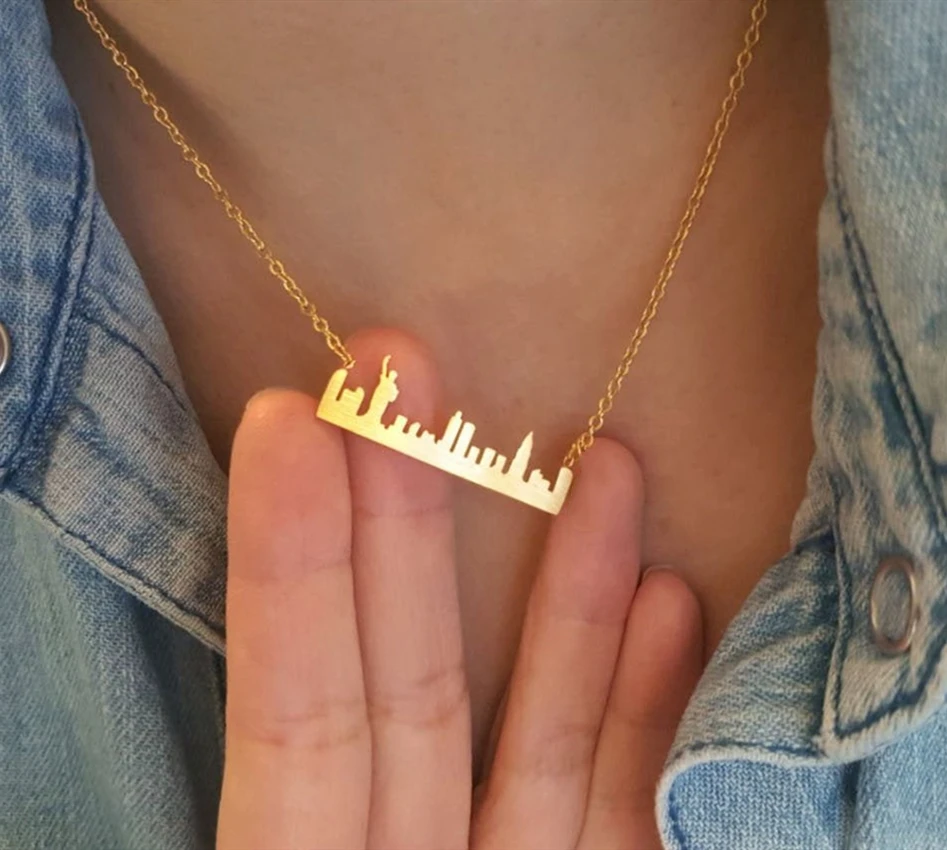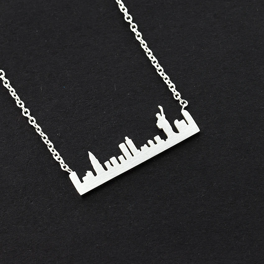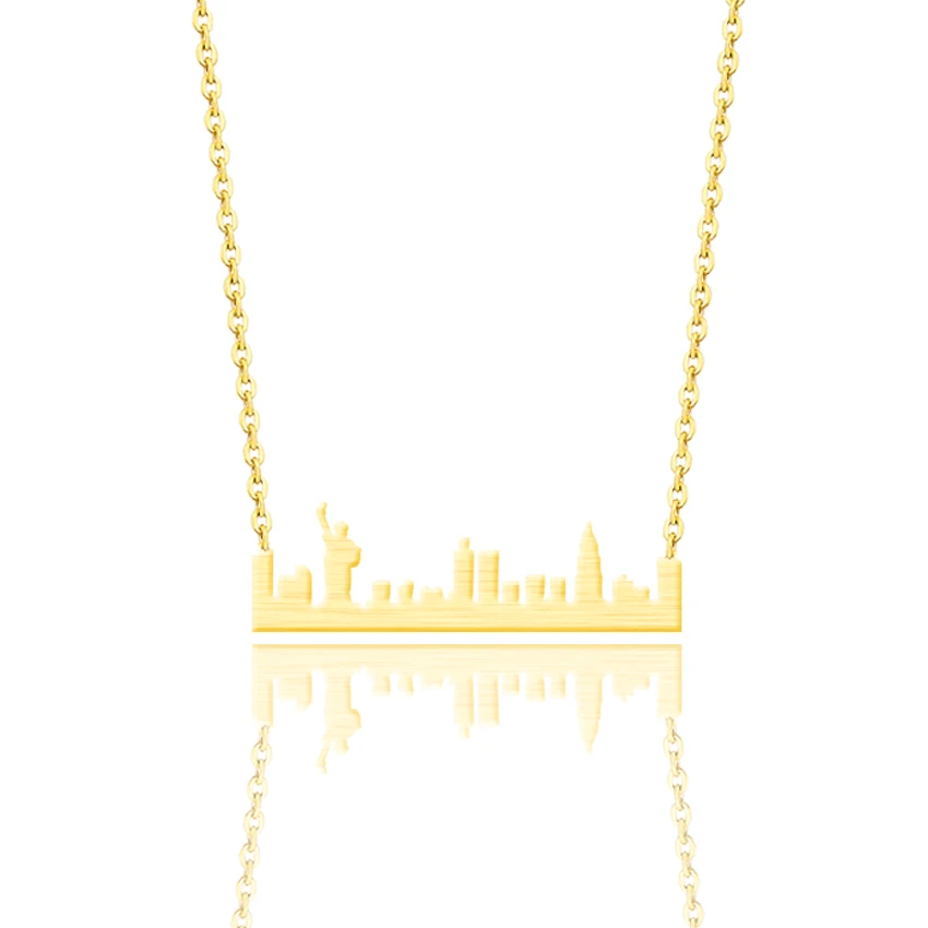 Статуя ожерелья нью-йоркского городского пейзажа, подвески Свобода, женское ювелирное изделие, золотая цепочка из нержавеющей стали, простой пейзаж, контур, чокер