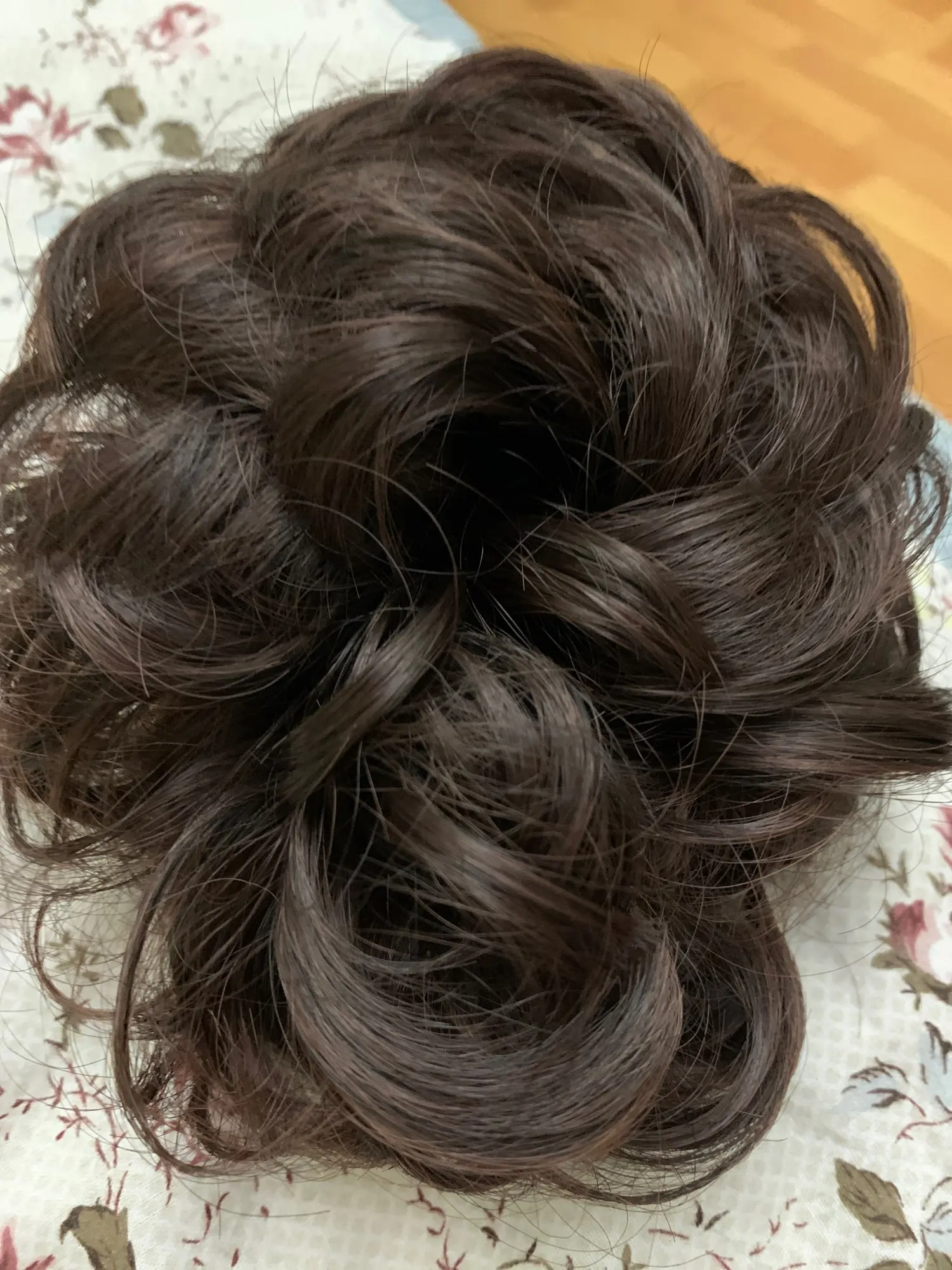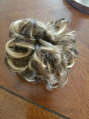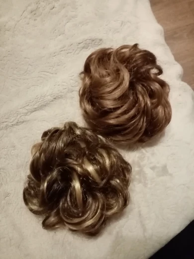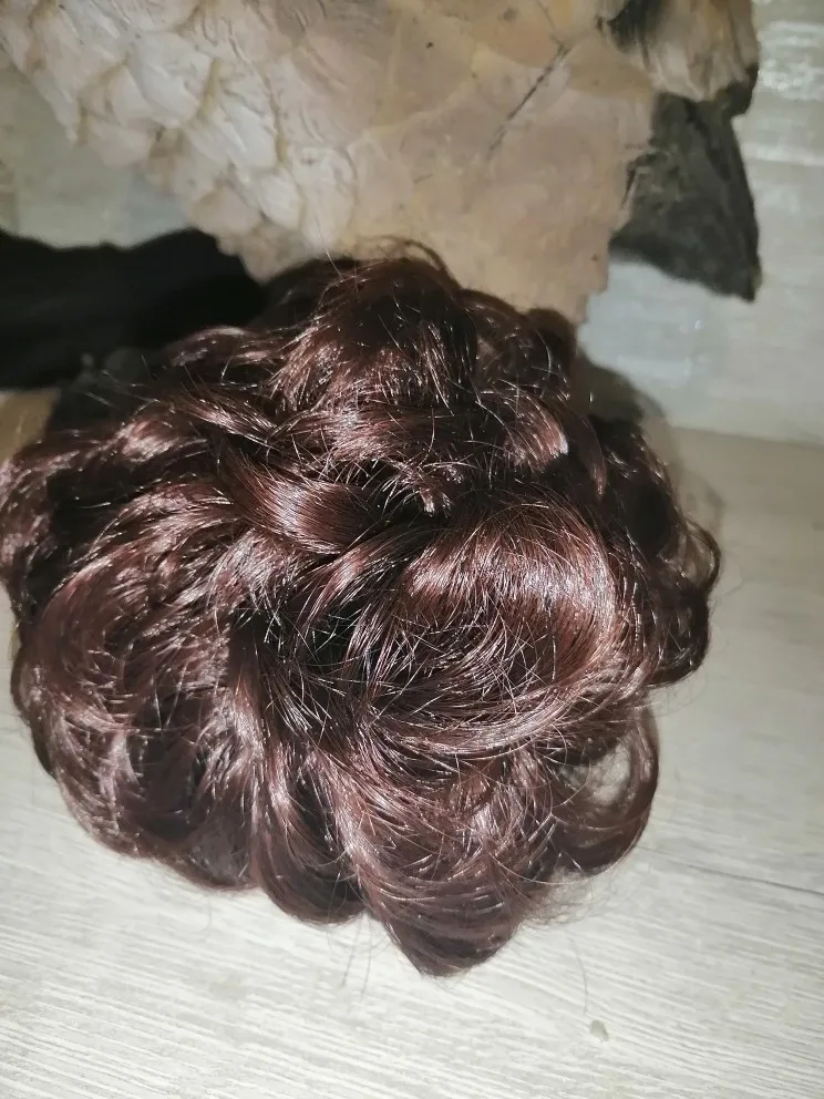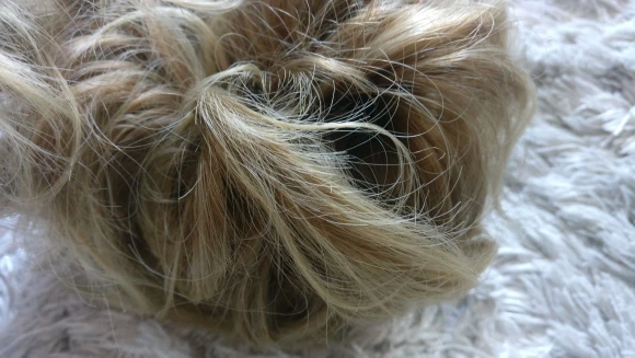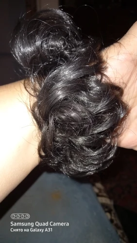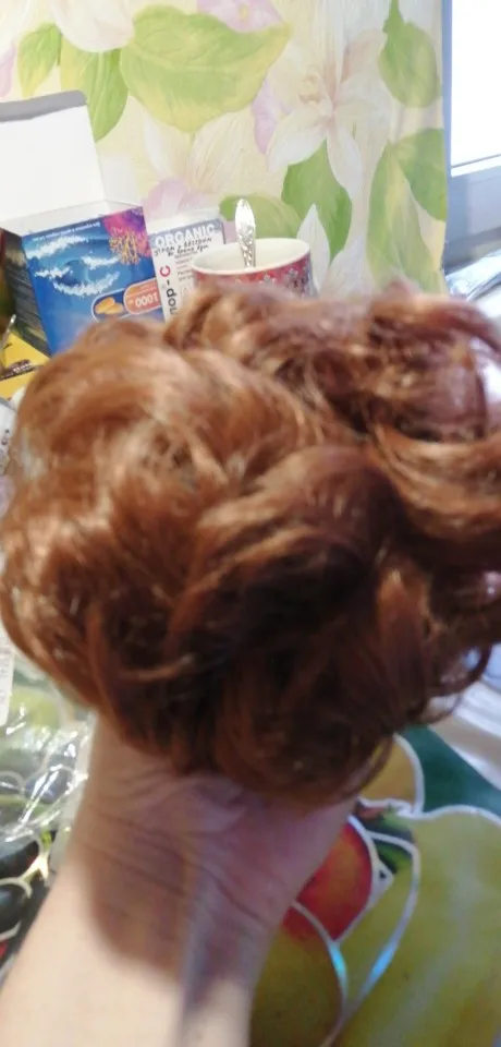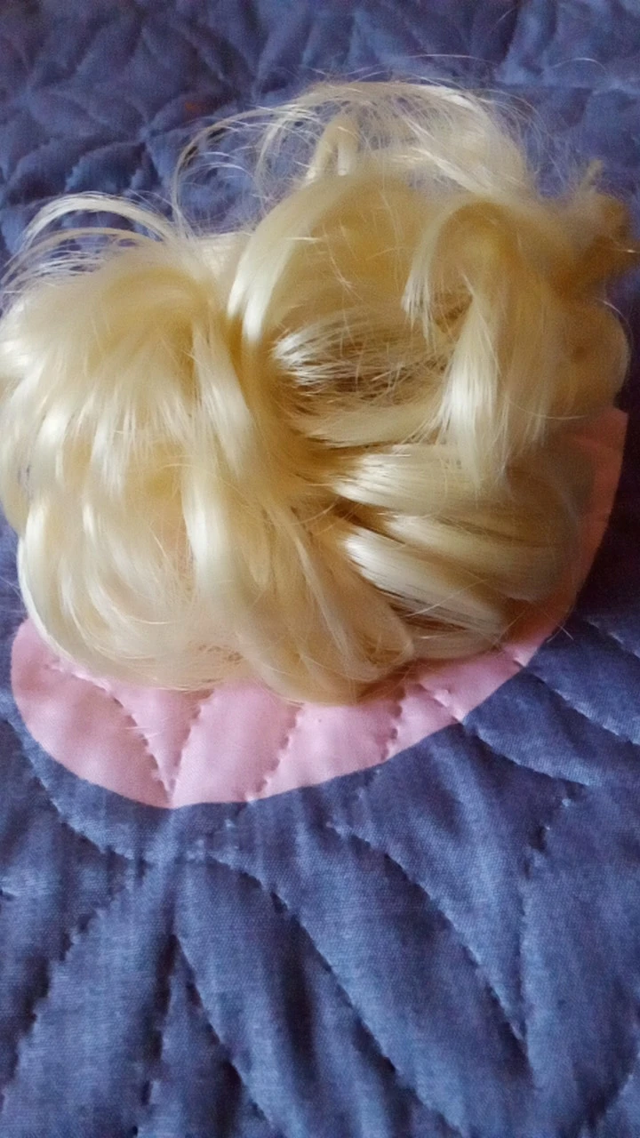 Посылка шла больше месяца. Пучок не такой объёмный, как на фото, но растрепать можно дополнительно. Понравилось, что не так сильно блестит, как кукольный. Есть запах, как от новой вещи, не токсичный. Резинка не очень эластичная, поэтому лучше волосы закрепить обычной резинкой, а сверху уже волосяной пучок. Смотрится хорошо!