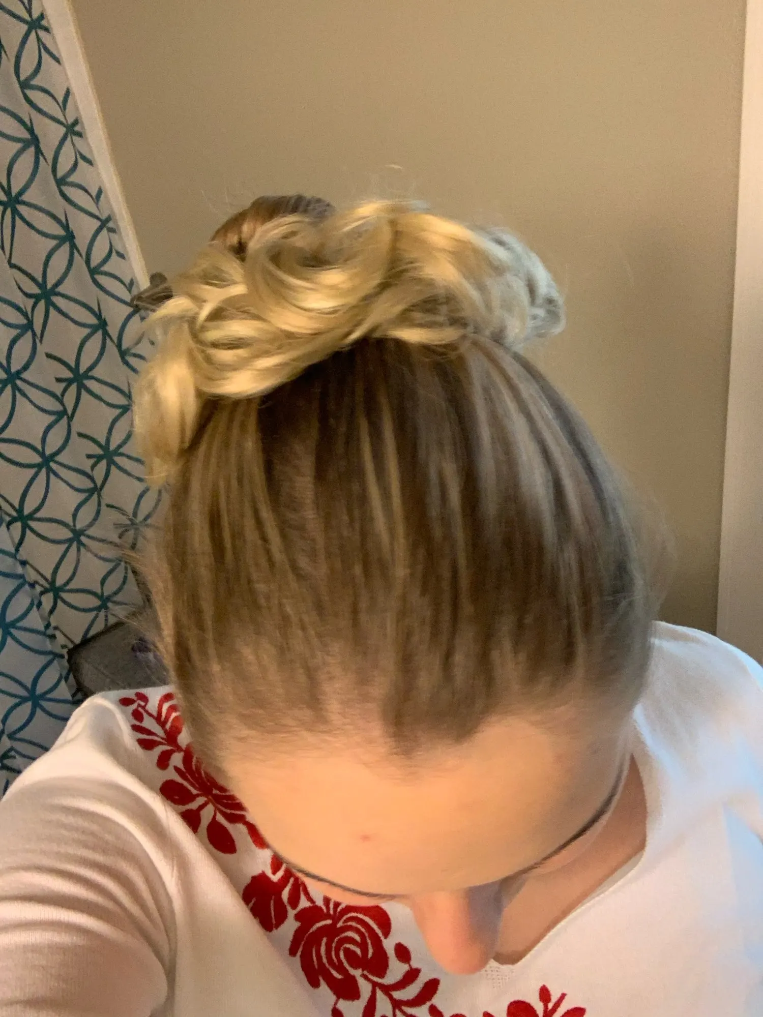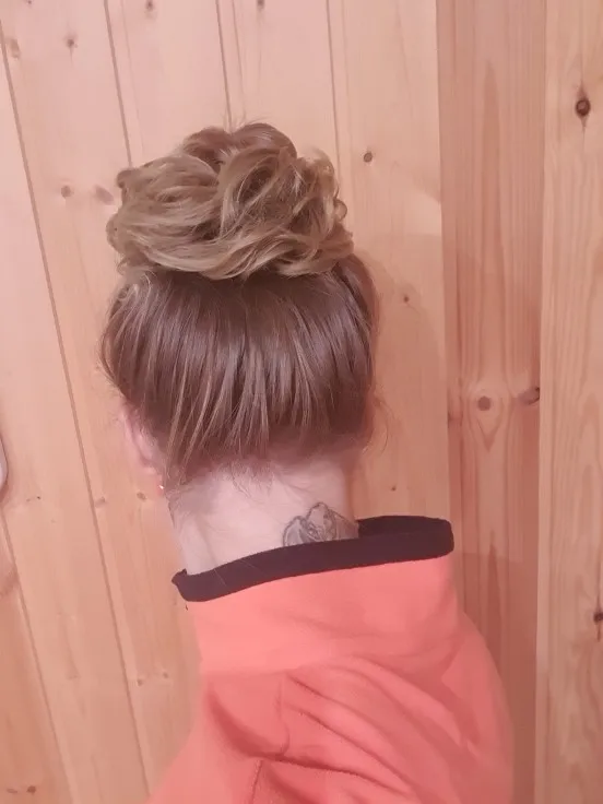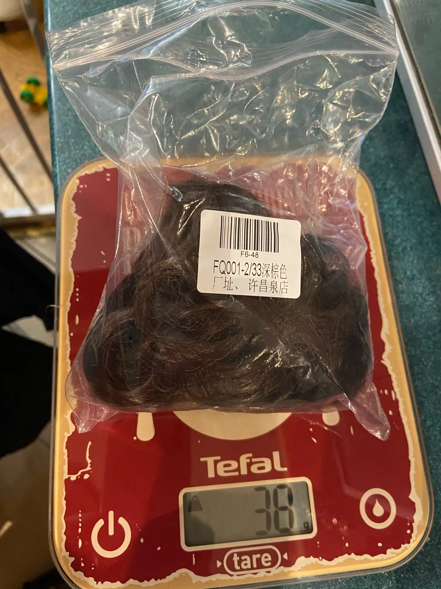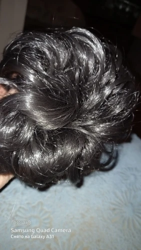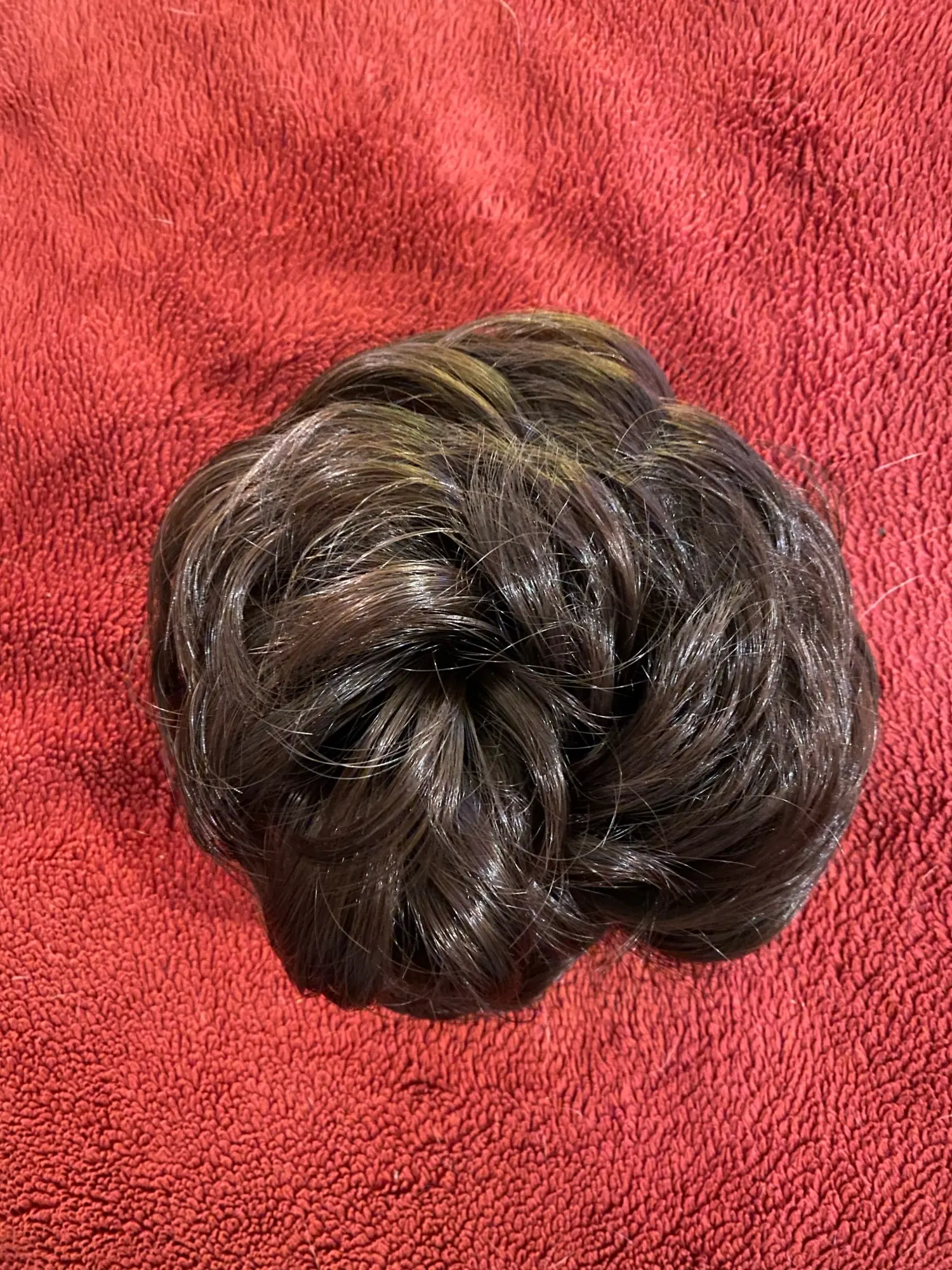 Посылка шла больше месяца. Пучок не такой объёмный, как на фото, но растрепать можно дополнительно. Понравилось, что не так сильно блестит, как кукольный. Есть запах, как от новой вещи, не токсичный. Резинка не очень эластичная, поэтому лучше волосы закрепить обычной резинкой, а сверху уже волосяной пучок. Смотрится хорошо!