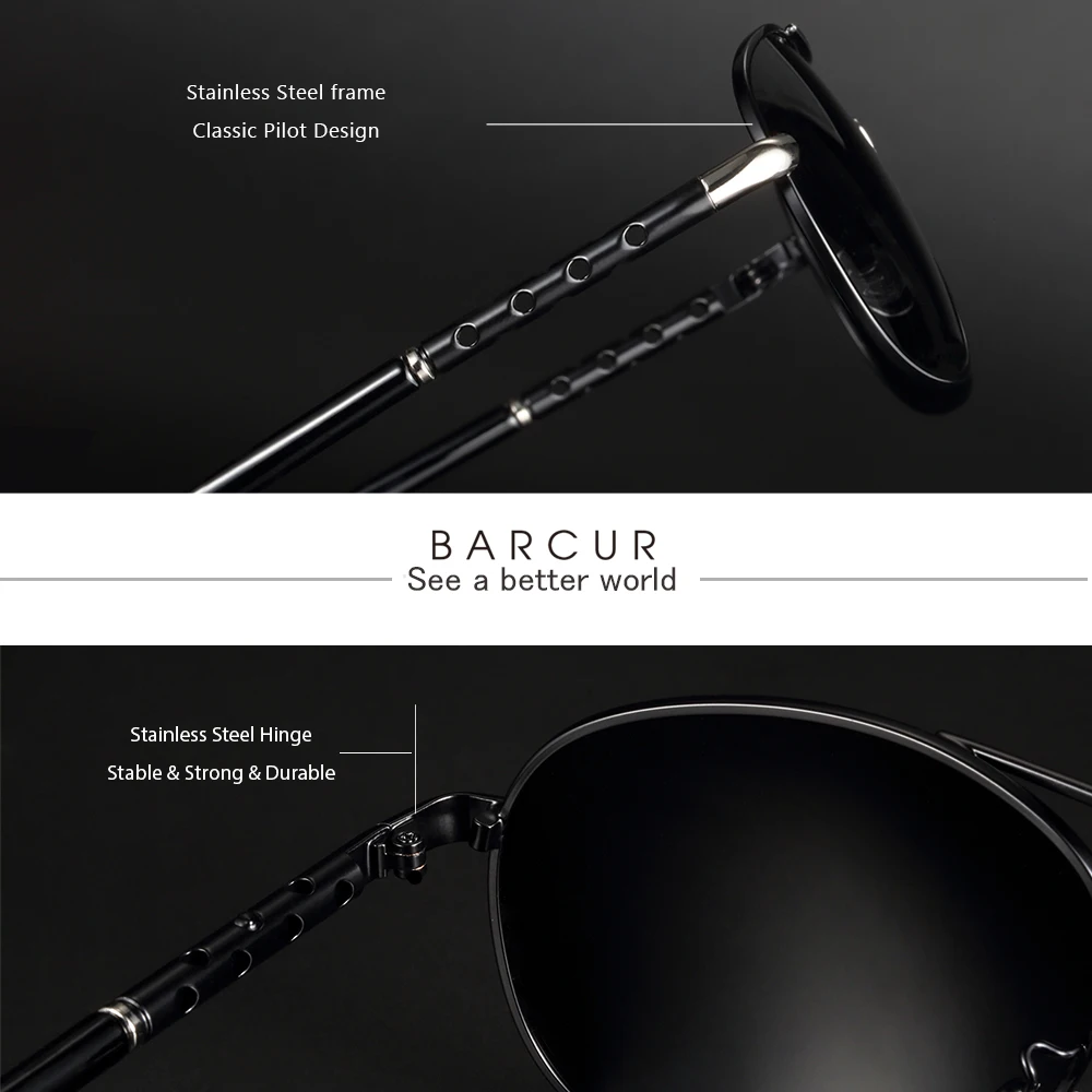 BARCUR, мужские солнцезащитные очки, пилот, поляризационные, солнце...