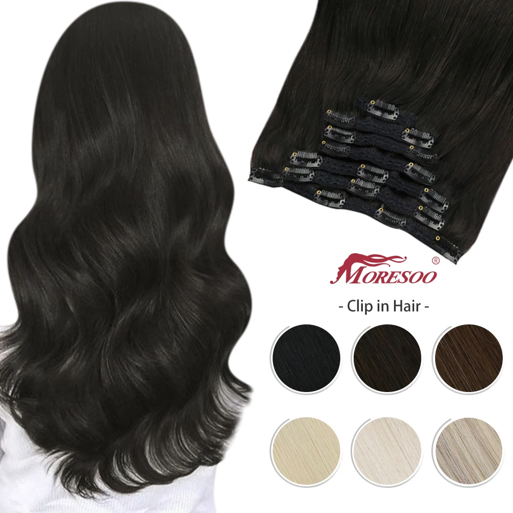 Moresoo человеческие волосы на заколке для наращивания 7 шт. машинка Реми шиньон для женщин однотонная длина естественных искусств