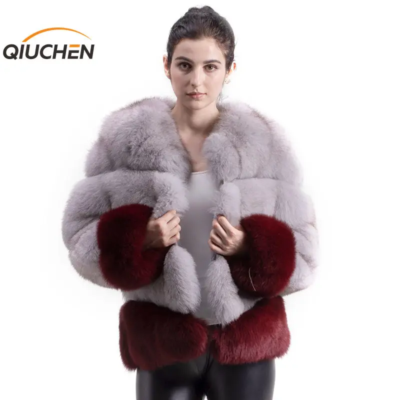 QIUCHEN PJ1818, 2019 г., Новое поступление, женские, густые, пушистые, шуба из натурального Лисьего меха, блокирующие цвет, оптовая продажа, можно выбрать любые два цвета