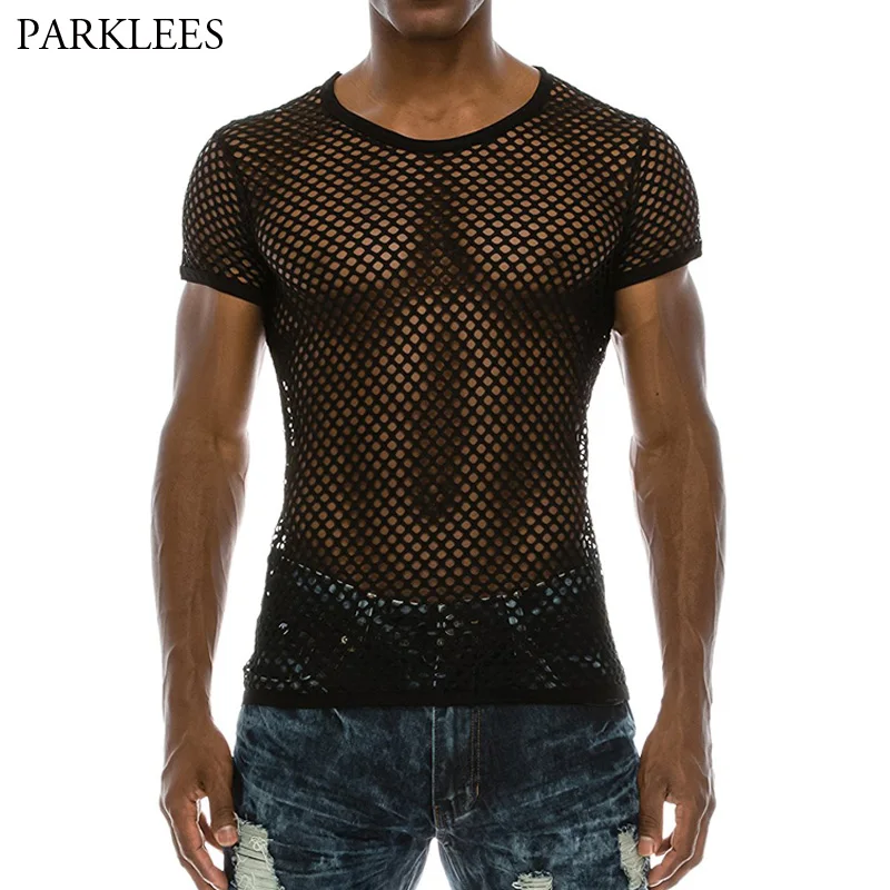 Мужская сетчатая прозрачная Сетчатая футболка 2023, модная сексуальная майка с коротким рукавом, одежда для ночного клуба, футболка для выступлений, уличная одежда, топы