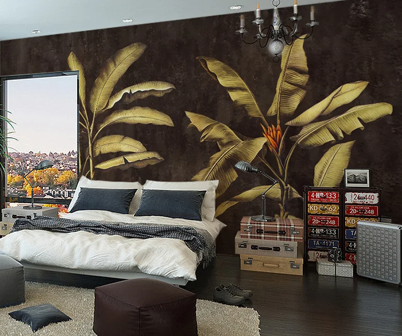 Настенная роспись Bacaz с изображением двух деревьев для спальни, фон с банановыми листьями, декор для спальни, 3d наклейки с листьями